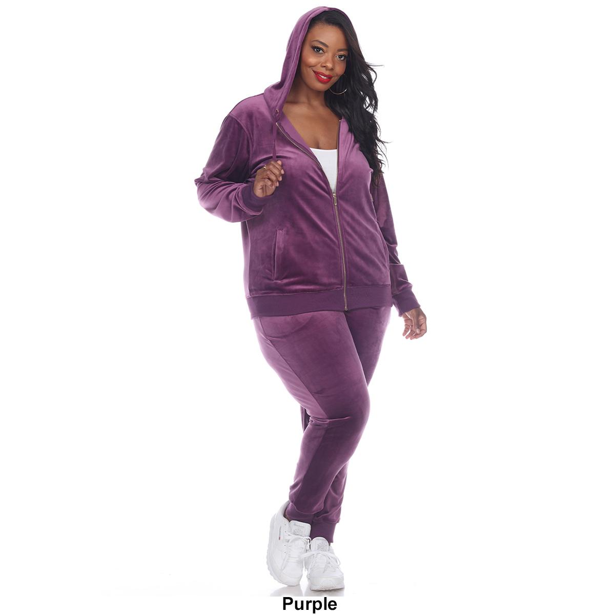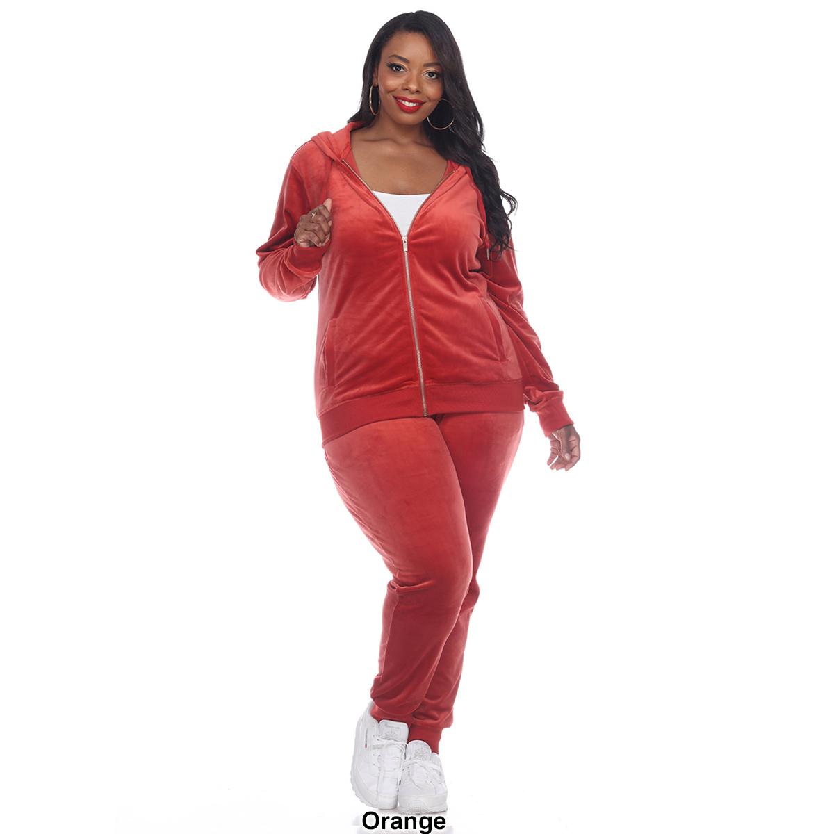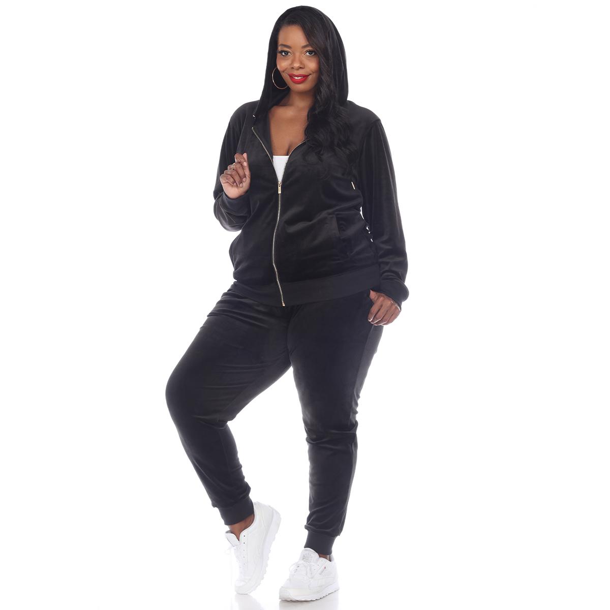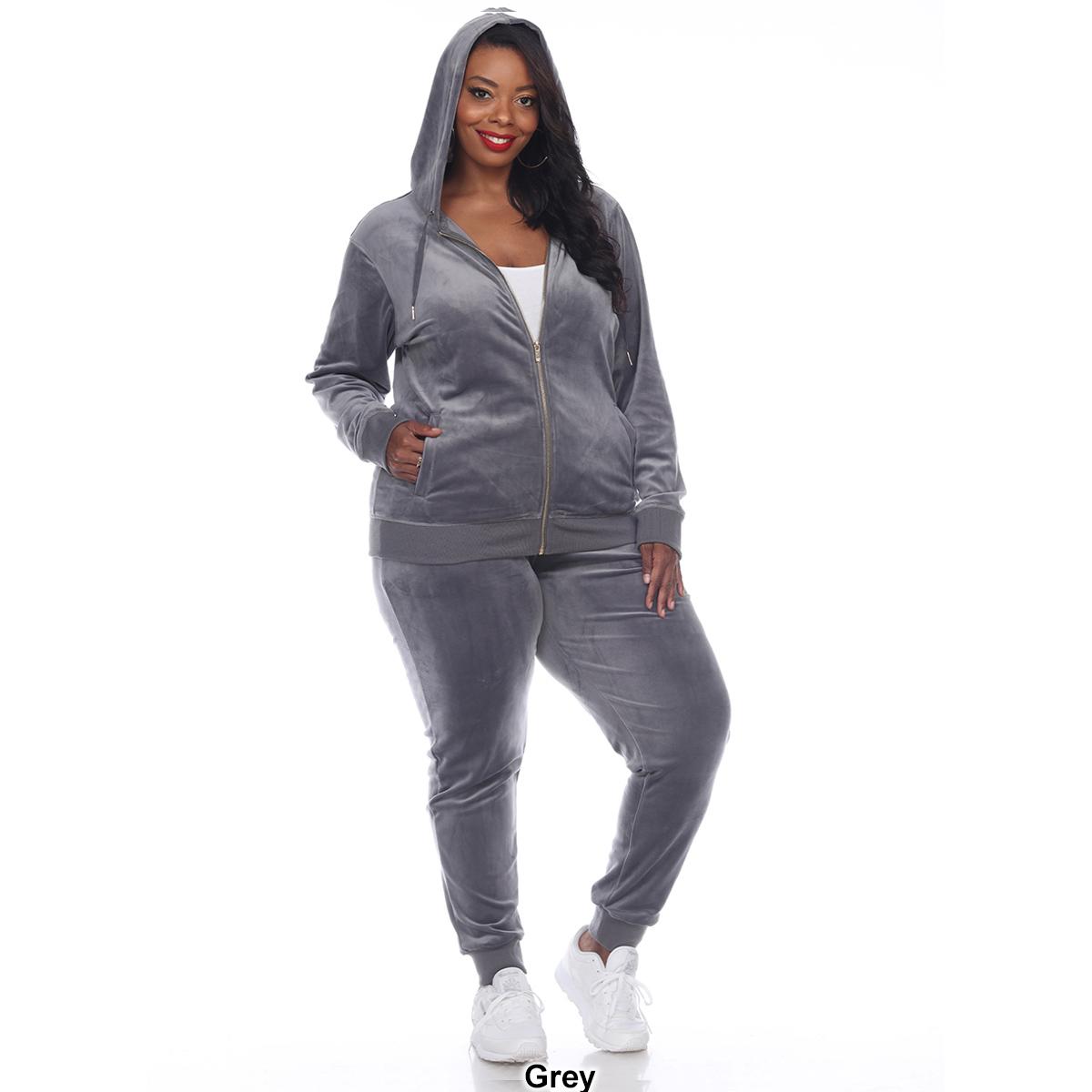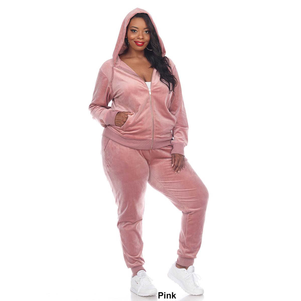 Description This Plus Size White Mark tracksuit set features the softest velour with a famous fitted style. The set includes a zip-up hoodie with two front half-kangaroo pockets,...