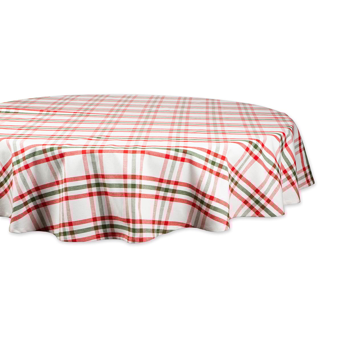 The DII® Nutcracker Plaid Tablecloth features a traditional Christmas holiday plaid design. Constructed with 1" hem with mitered corners. Perfect for your holiday table.