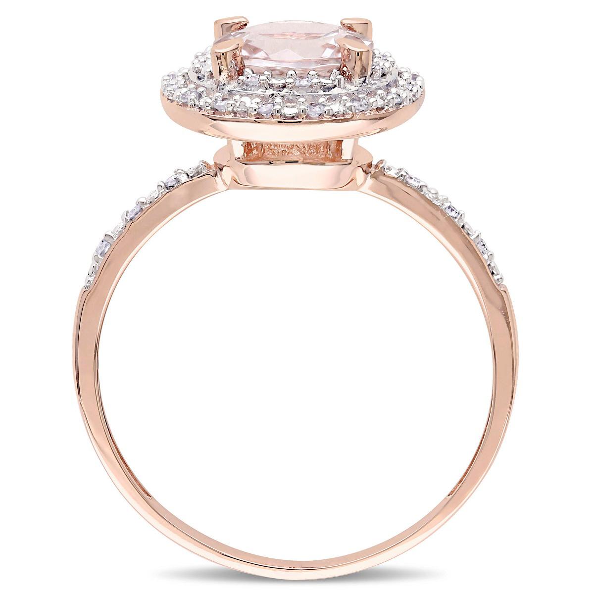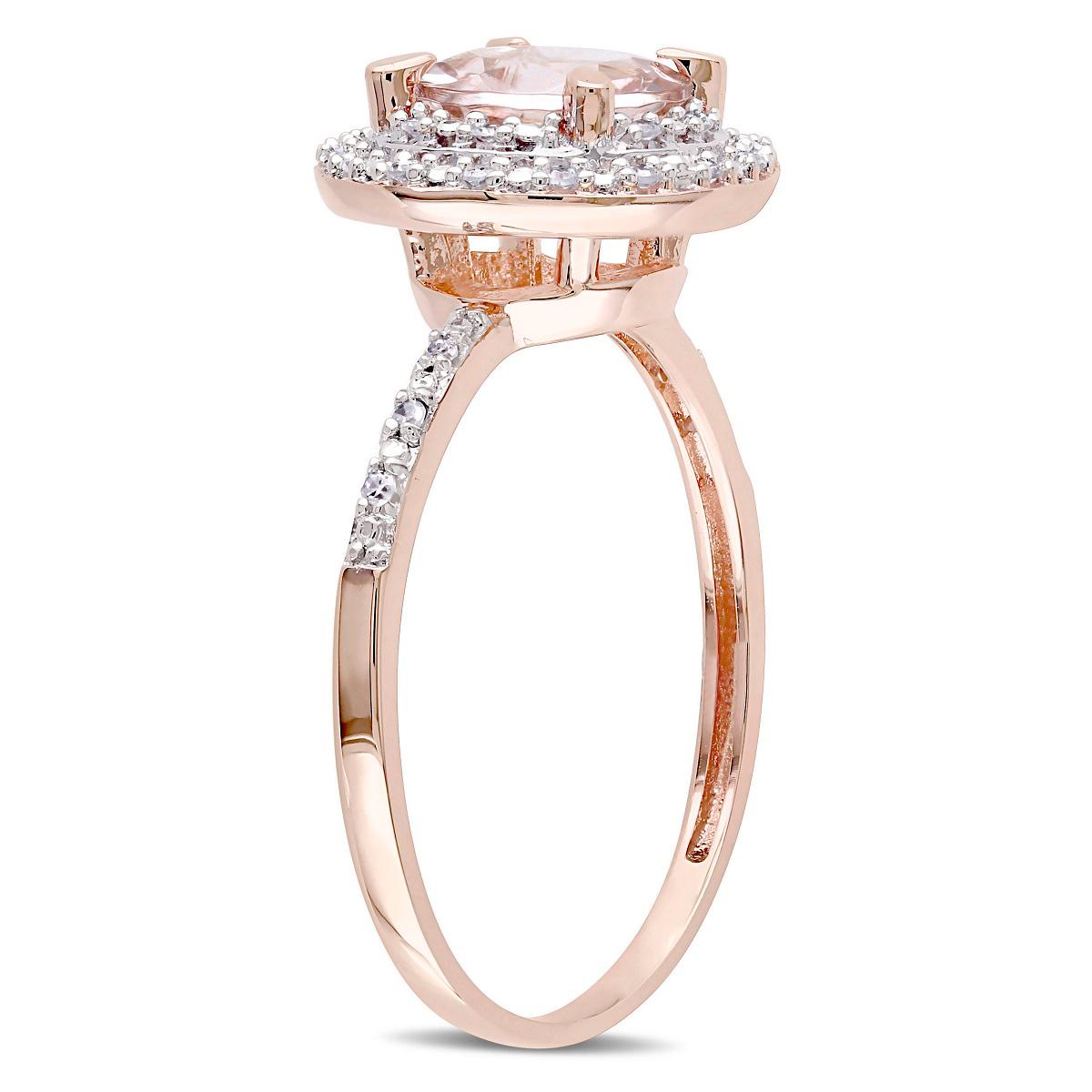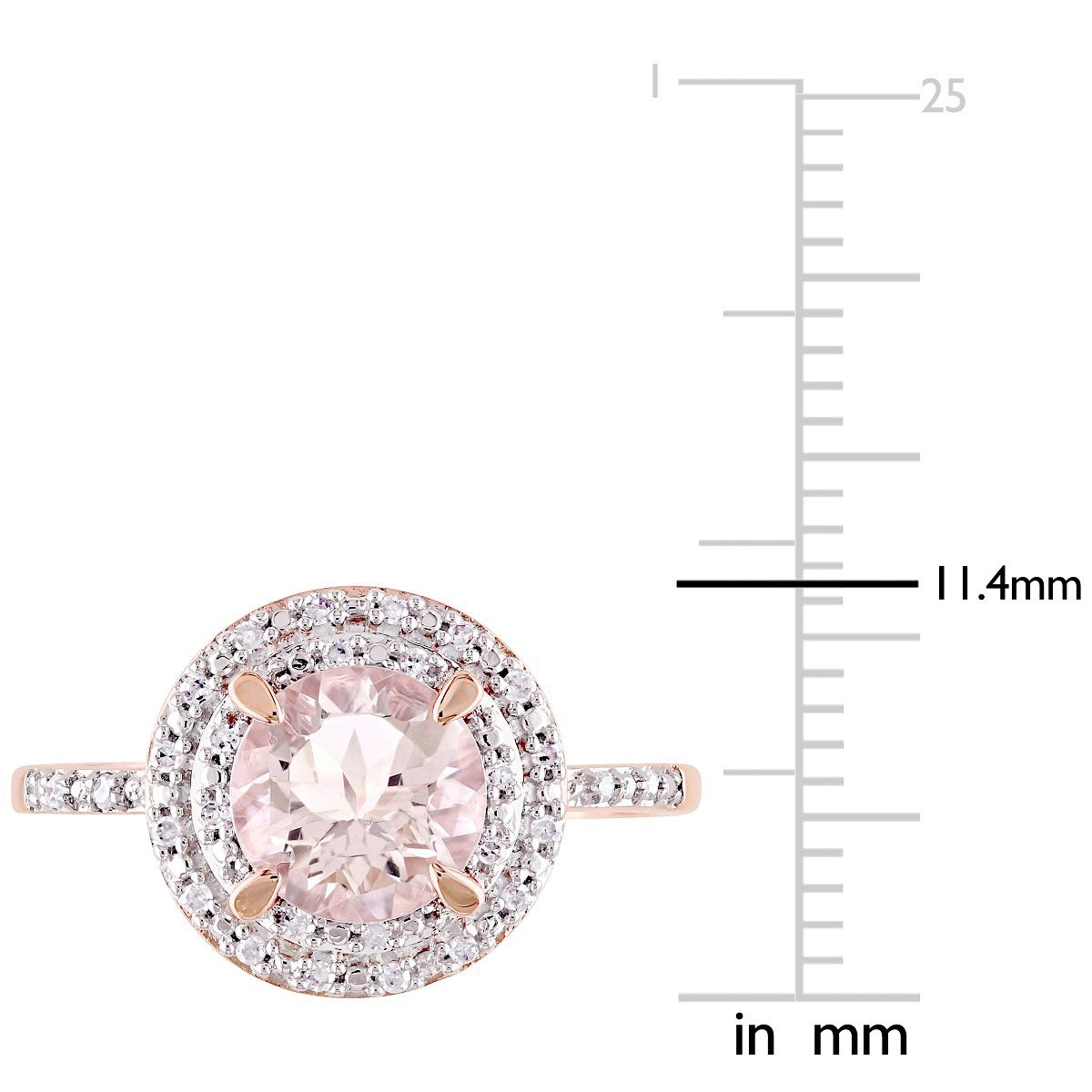 Description This magnificent Gemstone Classics™ 10kt. rose gold double halo ring is a showstopping statement. This ring features a round-cut 1 1/6ctw. morganite center stone...