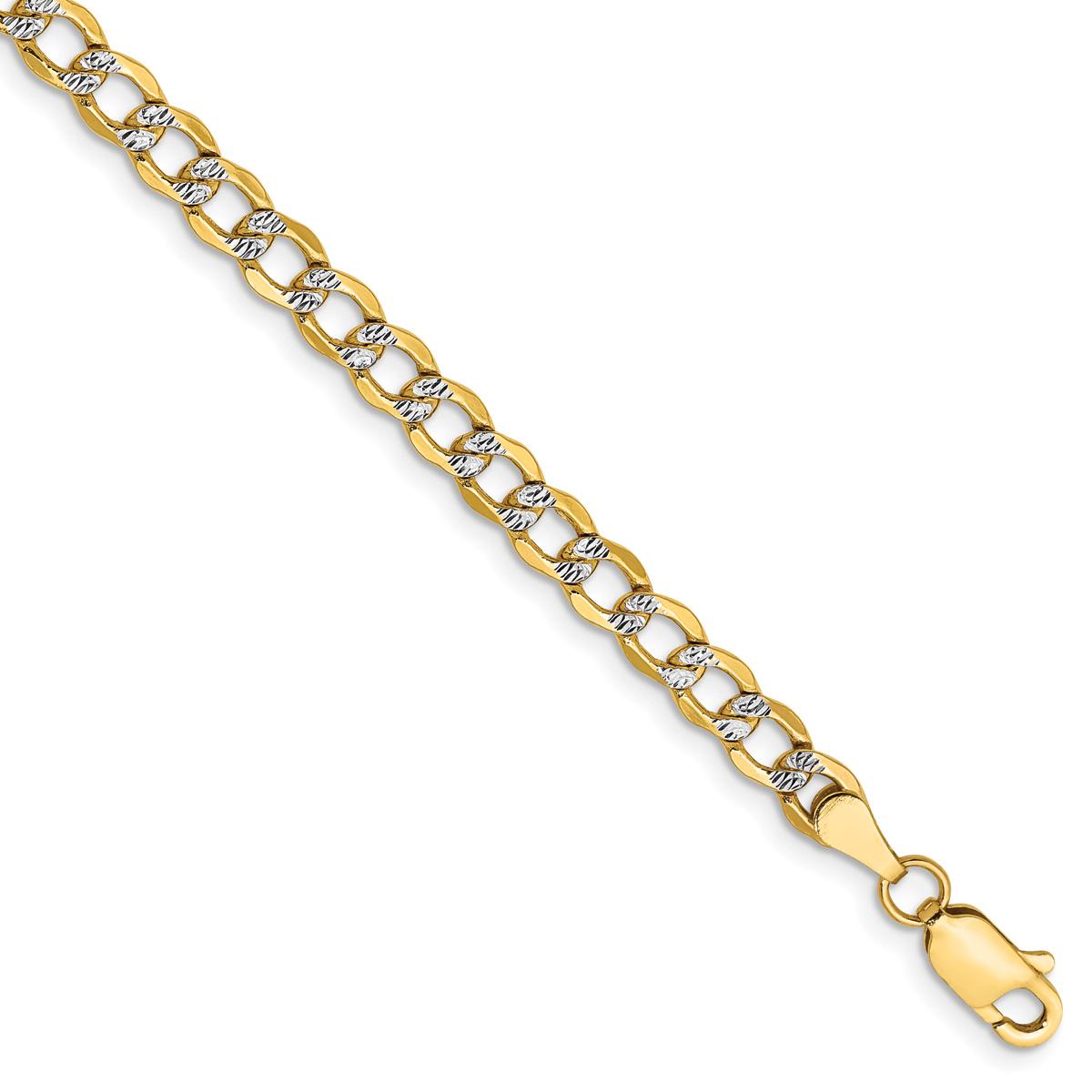 Refine your fashion style with this Gold Classics™ semi-solid pave curb chain necklace. Designed from 14kt. yellow gold with white rhodium plating, the sixteen-inch long and 4.3mm wide chain necklace boasts intricate diamond-cut detailing and a bright buffed finish for a classy appeal. This distinctive chain necklace secures with a lobster clasp.