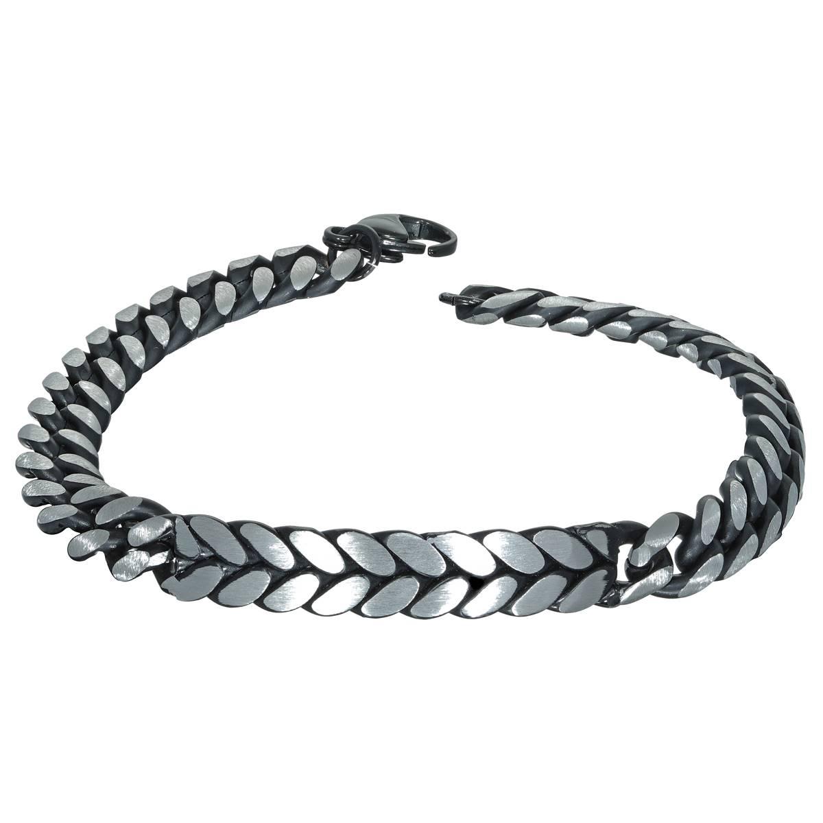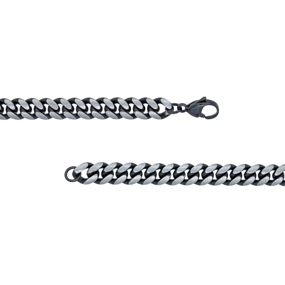 He´ll turn to this bold Mens Lynx stainless steel and black ion-plating ID foxtail chain bracelet to complement his attire. An identification plate crafted of brushed stainless steel is the focal point of this rugged men´s bracelet while black ion-plated stainless steel foxtail chain forms the rest of the bracelet and secures with a lobster clasp.