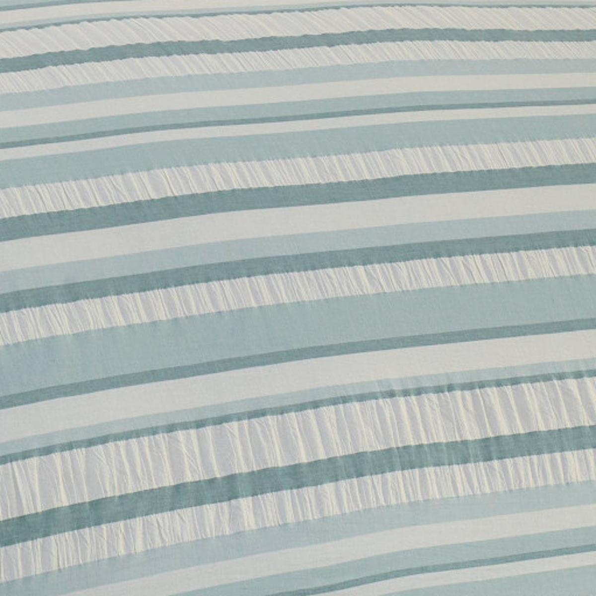 This Tommy Bahama Clearwater Cay duvet cover set features a monochromatic palette of silvery blues on a soft white cotton ground that inspires thoughts of sea spray and cool breezes and is sure to have a calming effect in any setting. A subtle seersucker finish adds unique textural interest. The coordinating shams feature an envelope closure and the duvet cover features a bottom button closure with additional inner corner ties.