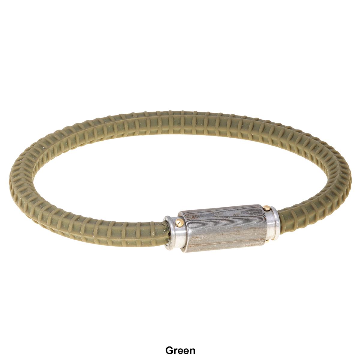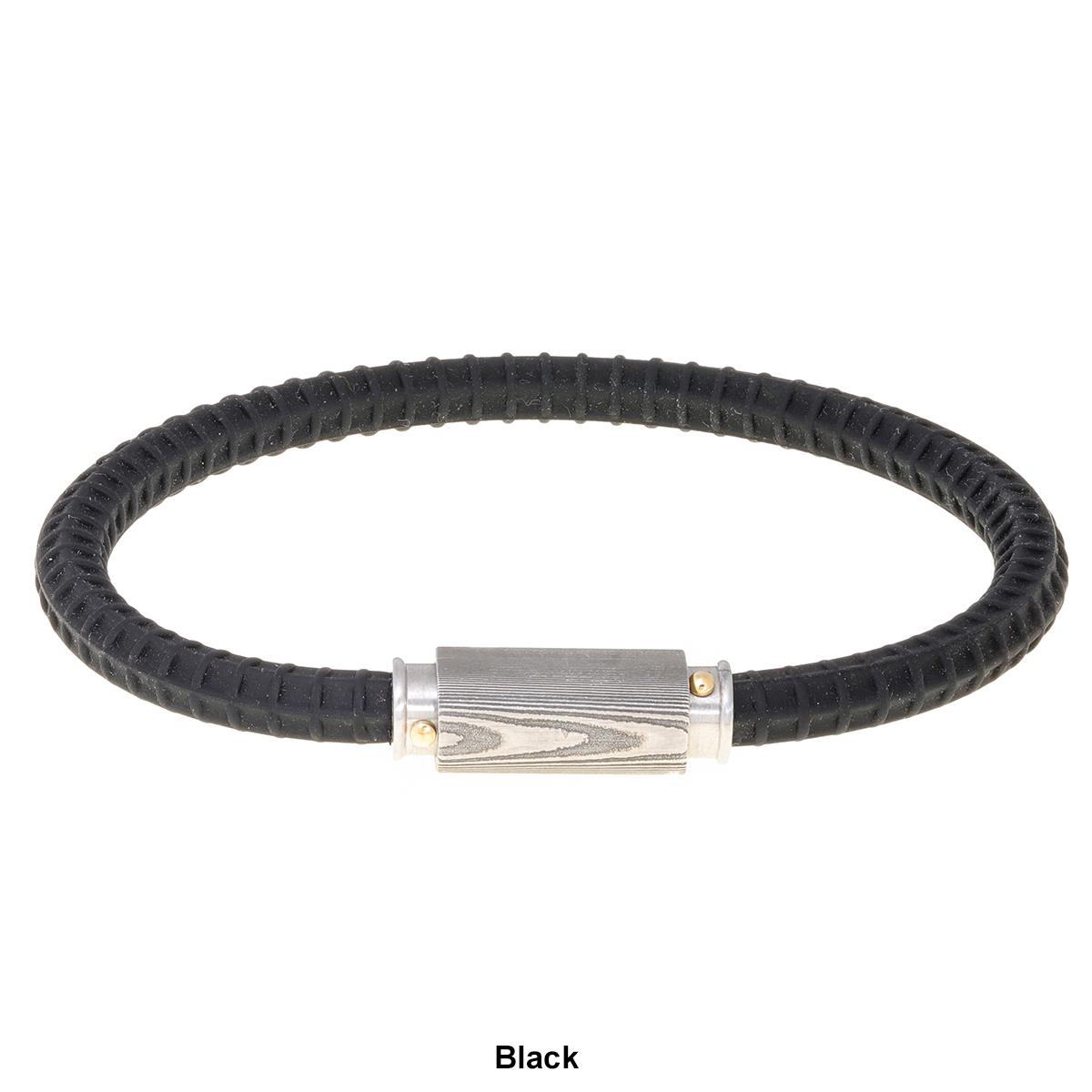 A look like none other, this Mens Lynx Damascus steel and silicone bracelet is an accessory he is sure to enjoy. The fashion-forward style is made of textured silicone with a Damascus steel magnetic clasp.