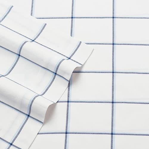 The Nautica Plot sheet set features the classically cool Nautica windowpane cotton percale sheeting layers in a tonal navy and chambray palette grounded with bright white. Machine wash, cold. Tumble dry. Materials: Cotton.