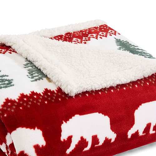 This Eddie Bauer Grizzly Peak red ultra-plush sherpa throw blanket makes it easy to curl up by the fire. Its polyester fabric is a warm winner, and its reverse side turns into a snuggly sherpa fleece.