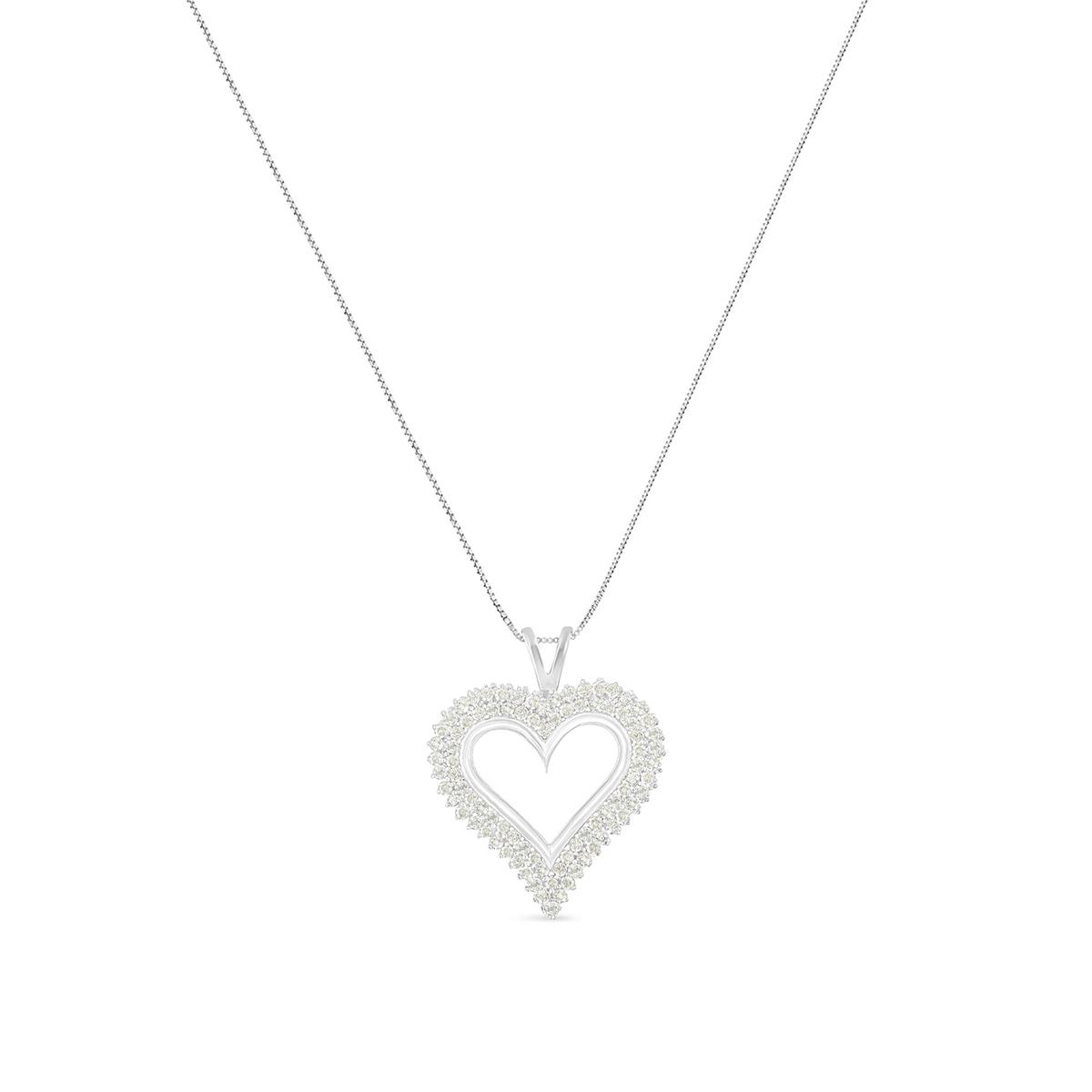 This Diamond Classics™ 1ctw. diamond heart pendant is sure to radiate romance. The brilliance of love, this diamond necklace features 2 rows of round diamonds prong-set along the edge of this open heart shape. It is crafted of stunning sterling silver, with a matching box chain necklace.