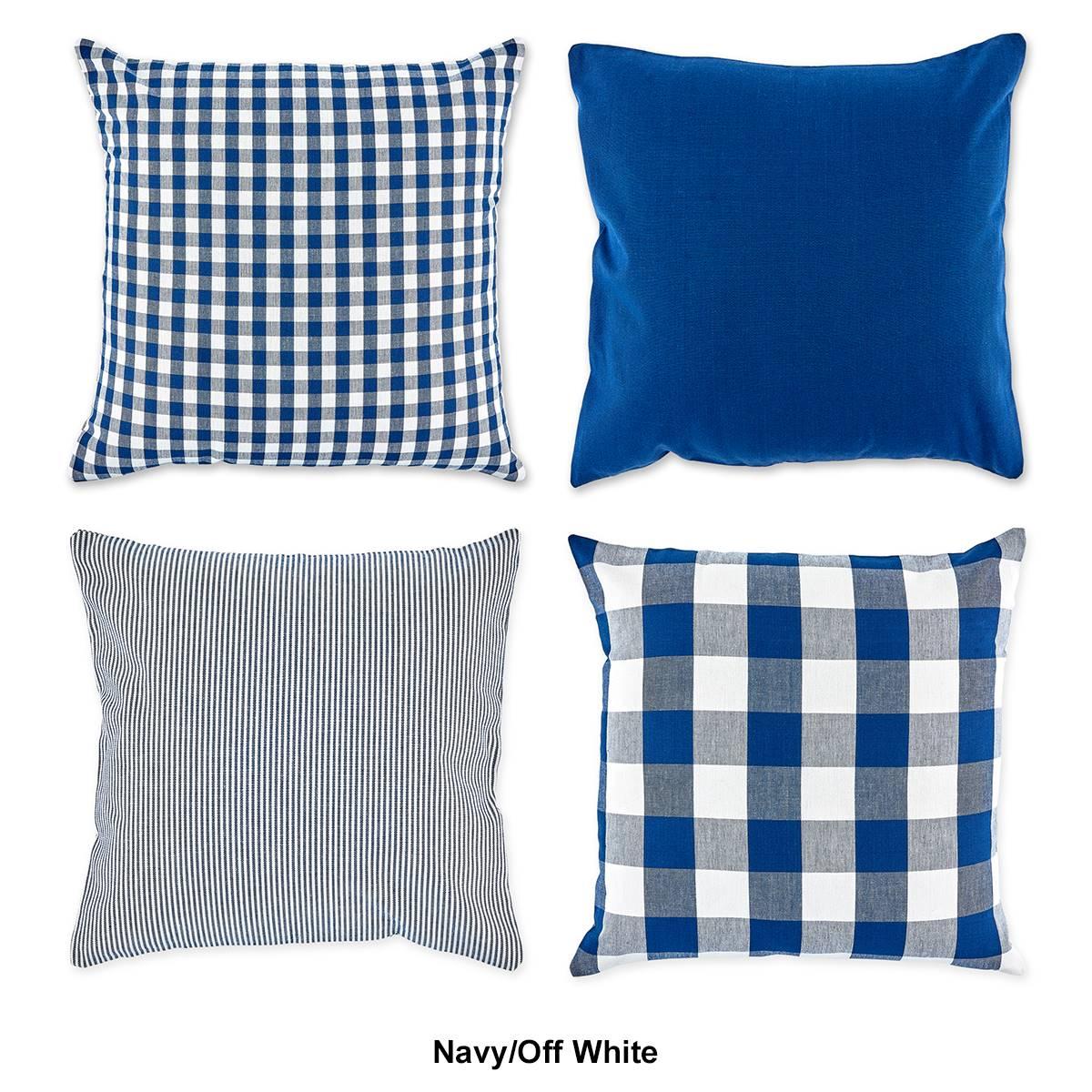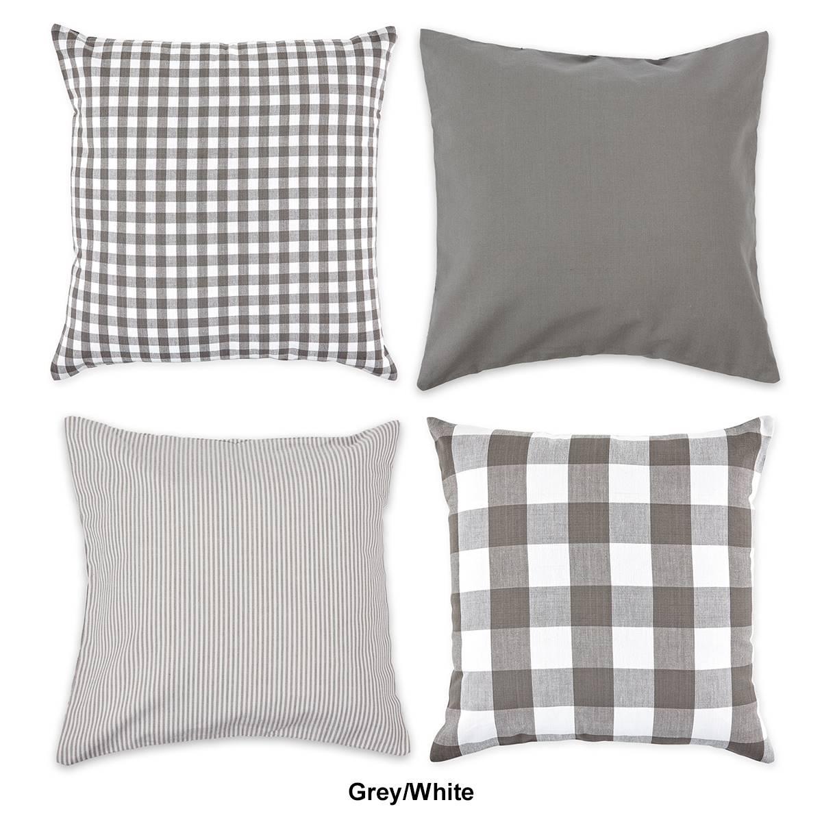 This DII® Assorted Pillow Cover comes in a set of 4 and includes 1 each of Gingham Check, Buffalo Check, Ticking, and Solid covers. The zipper is hidden on the back of the pillowcase for easy pillow insert and a finished upscale look. Mix natural texture and rustic charm into the rest of your home by placing these throw pillow covers on benches, beds, outdoor furniture, and more. These pillow covers make a great addition to your home, whether as decoration for your bed, couch, or chairs! Machine wash in cold water separately on the gentle cycle. Low iron if needed.Set includes: