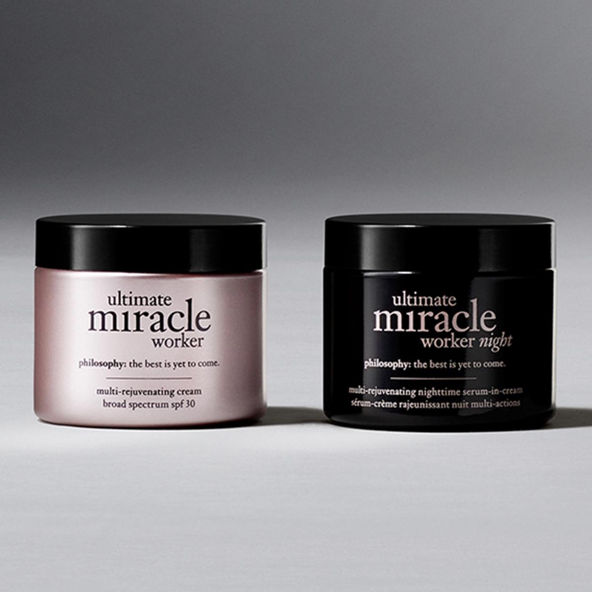 Philosophy 2-ounce Ultimate Miracle Worker. Philosophy 2-ounce Ultimate Miracle Worker targets lines, wrinkles, and firmness, dark circles and puffiness, plus rebuilds and rejuvenates the skin.