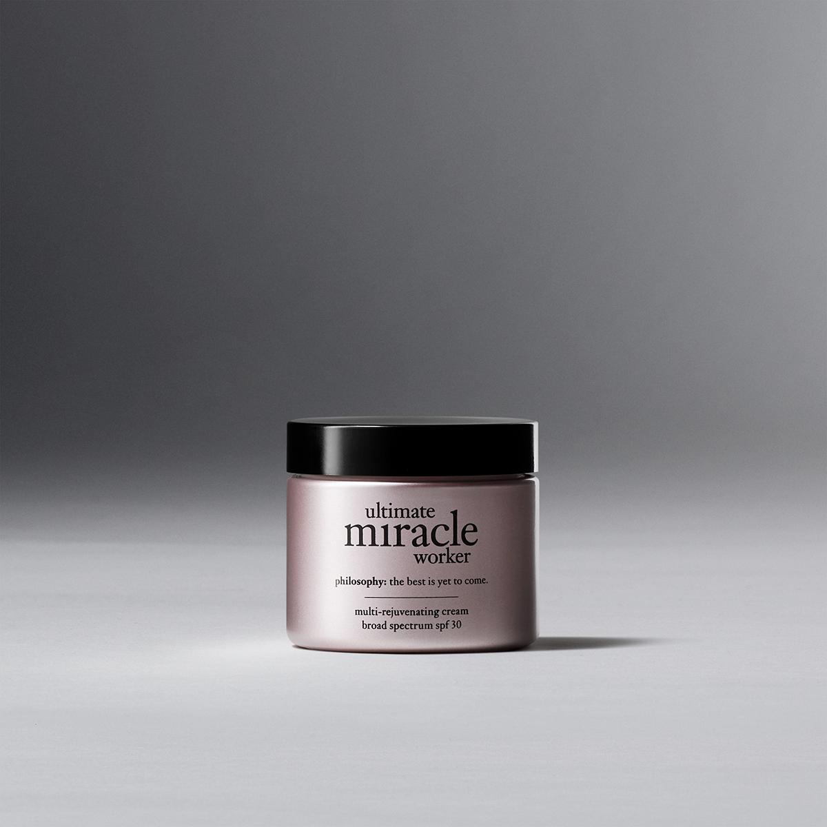 Description Philosophy 2-ounce Ultimate Miracle Worker. Philosophy 2-ounce Ultimate Miracle Worker targets lines, wrinkles, and firmness, dark circles and puffiness, plus...