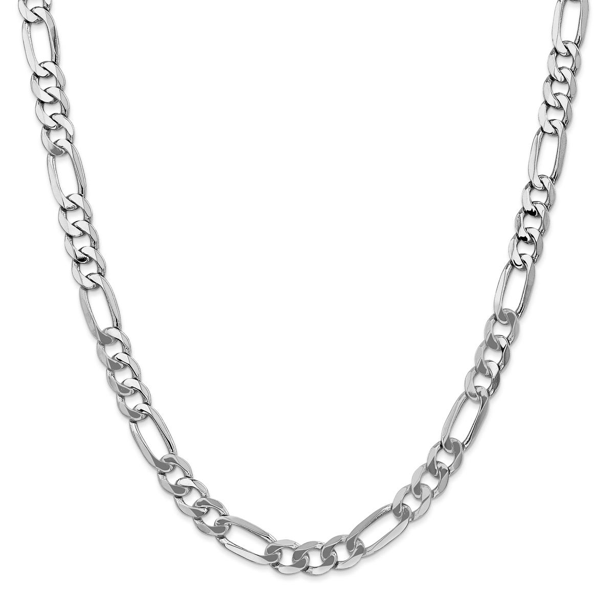 Create a sensation with this Mens Gold Classics™ 14kt. white gold flat Figaro chain bracelet. Gleaming with a brilliant polished finish, the eight-inch long and 7mm wide bracelet makes a wonderful addition to any outfit. Sure to impress, this grand chain bracelet comes with a lobster clasp security.