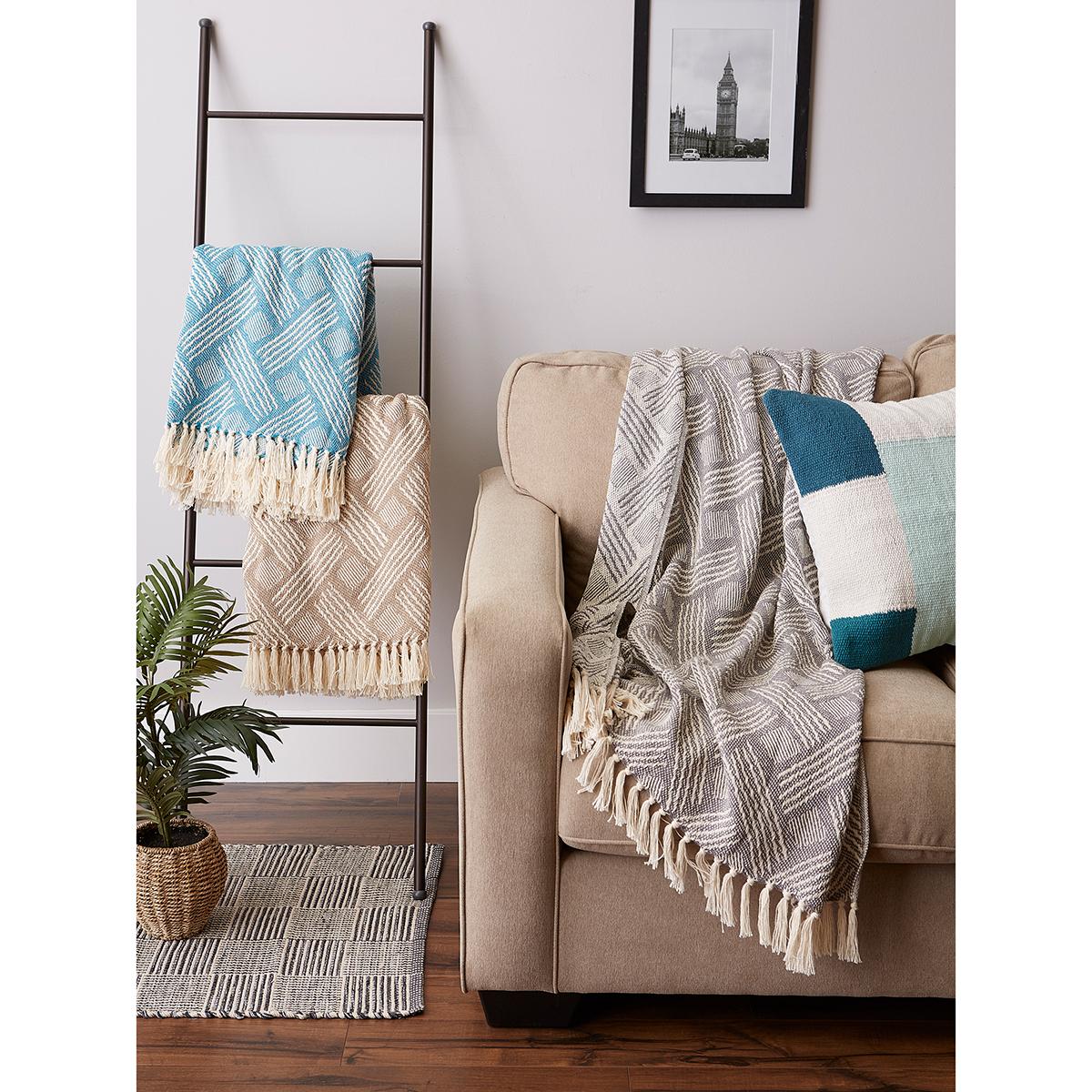 The DII® basketweave throw measures 50" x 60" and is constructed from 100% cotton. Old-fashioned look with a modern twist and a 3" decorative fringe for the perfect finish that won´t unravel in the wash. This throw has a very chic and trendy Farmhouse look. Perfect to throw over a couch or chair to add a splash of color and provide warmth on a cold night. Use DII® throw blankets to stay warm, as a decor piece over a chair or couch, to wrap housewarming gifts, as a picnic blanket, or when camping.