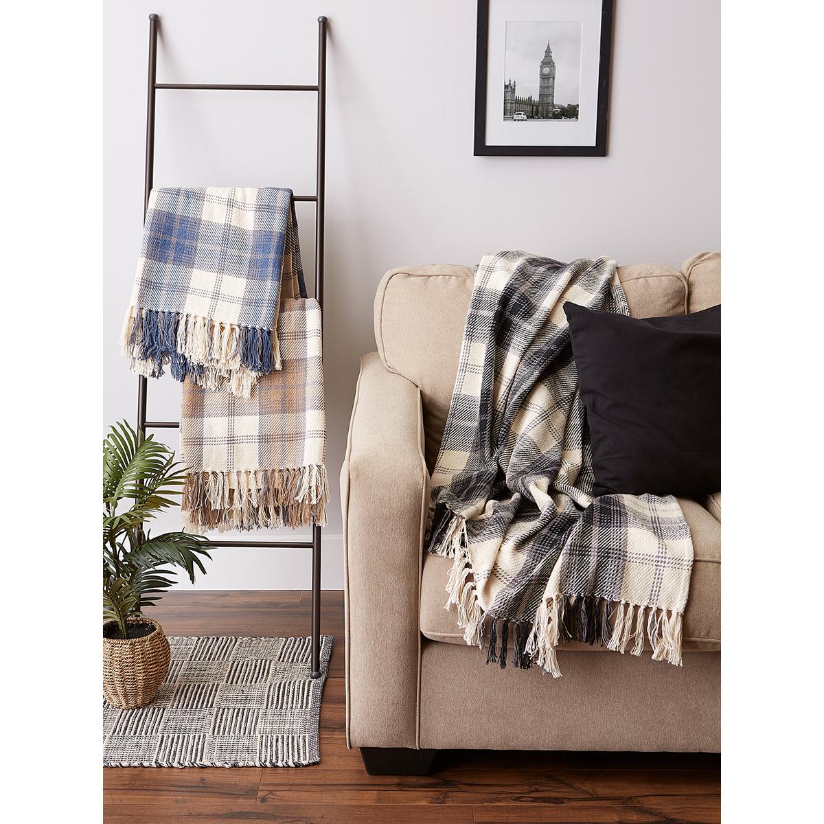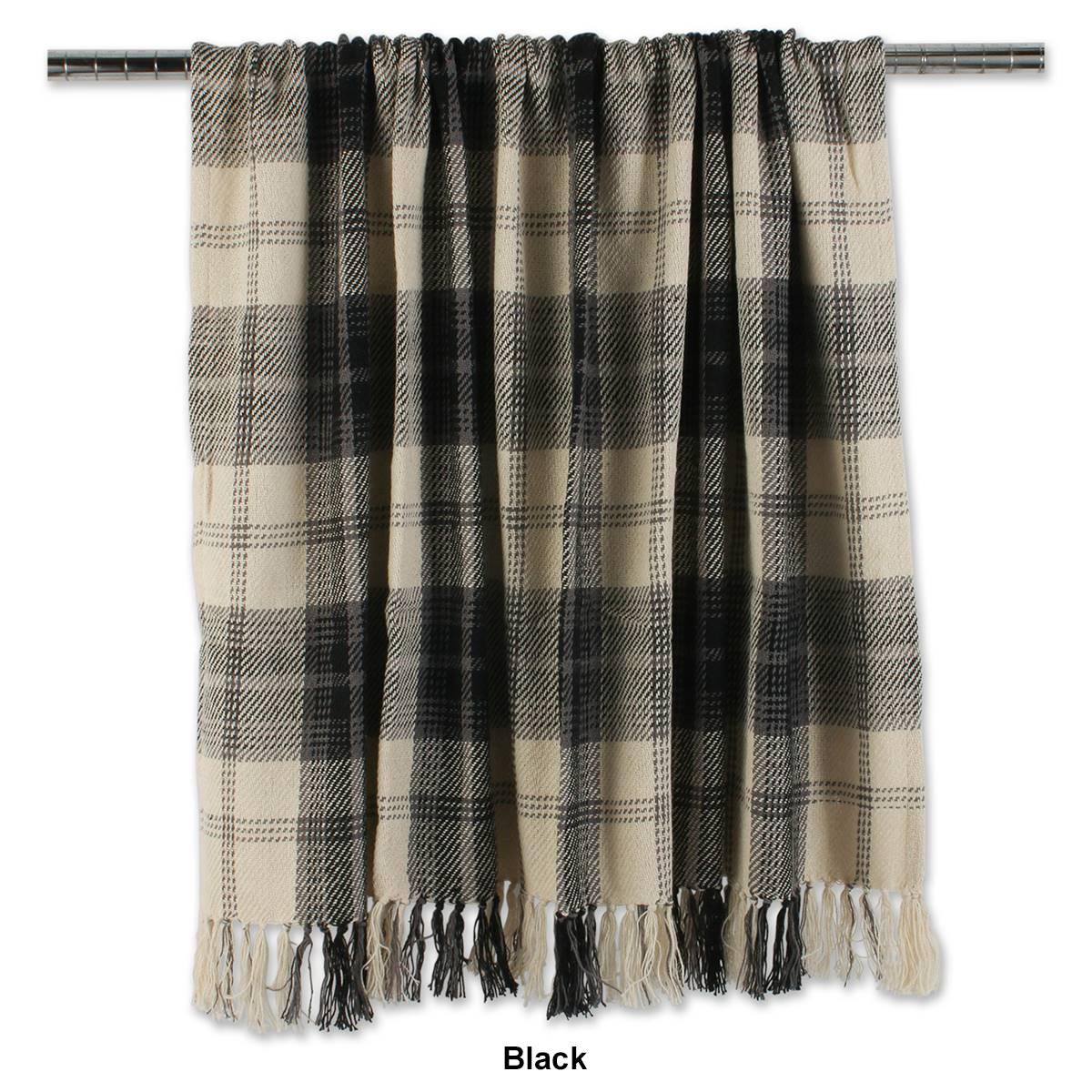 Description DII® black farmhouse plaid throw measures 50" x 60" and is constructed from 100% cotton. Old-fashioned look with a modern twist and 3" decorative fringe for the...