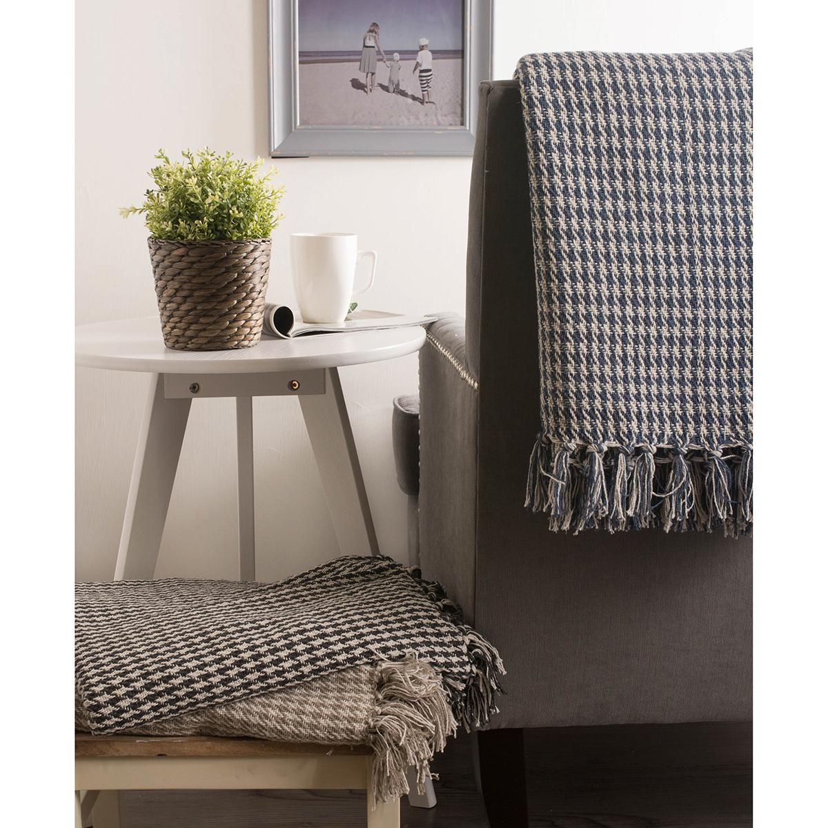 The DII® Houndstooth throw measures 50" x 60" and is constructed from 100% cotton. This throw will compliment any decor and features a 2.5" decorative fringe for the perfect finish that won´t unravel in the wash. A classic pattern that will compliment any decor. Perfect to throw over a couch or chair to add a splash of color and provide warmth on a cold night. Use DII® throw blankets to stay warm, as a decor piece over a chair or couch, to wrap housewarming gifts, as a picnic blanket, or when camping.