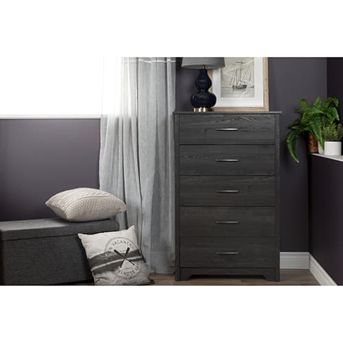 Description This South Shore Fusion 5 drawer chest will help you create a trendy and peaceful bedroom. Its rich grey oak finish goes perfectly with the sleek, contemporary...