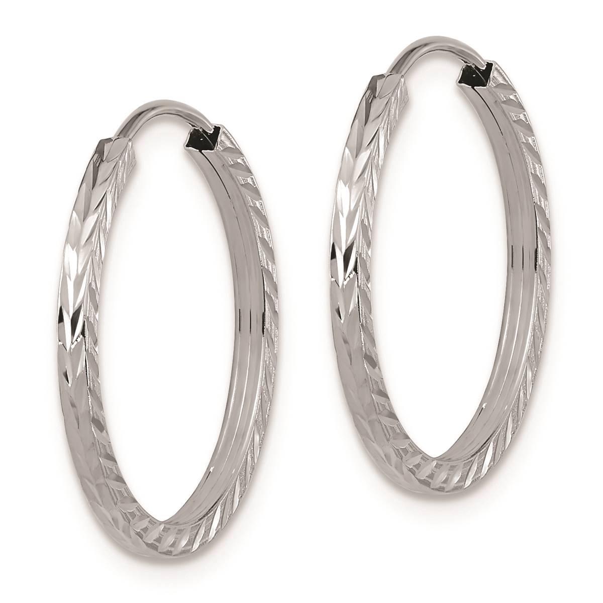 Give your look an extra hint of style and sophistication with these Gold Classics™ hoop earrings. Styled from 14kt. white gold, the 20mm square tube hoop earrings have a diamond-cut detailing on a polished finish surface for a wonderful look. Secured with an endless clasp, these round hoops are sure to delight.