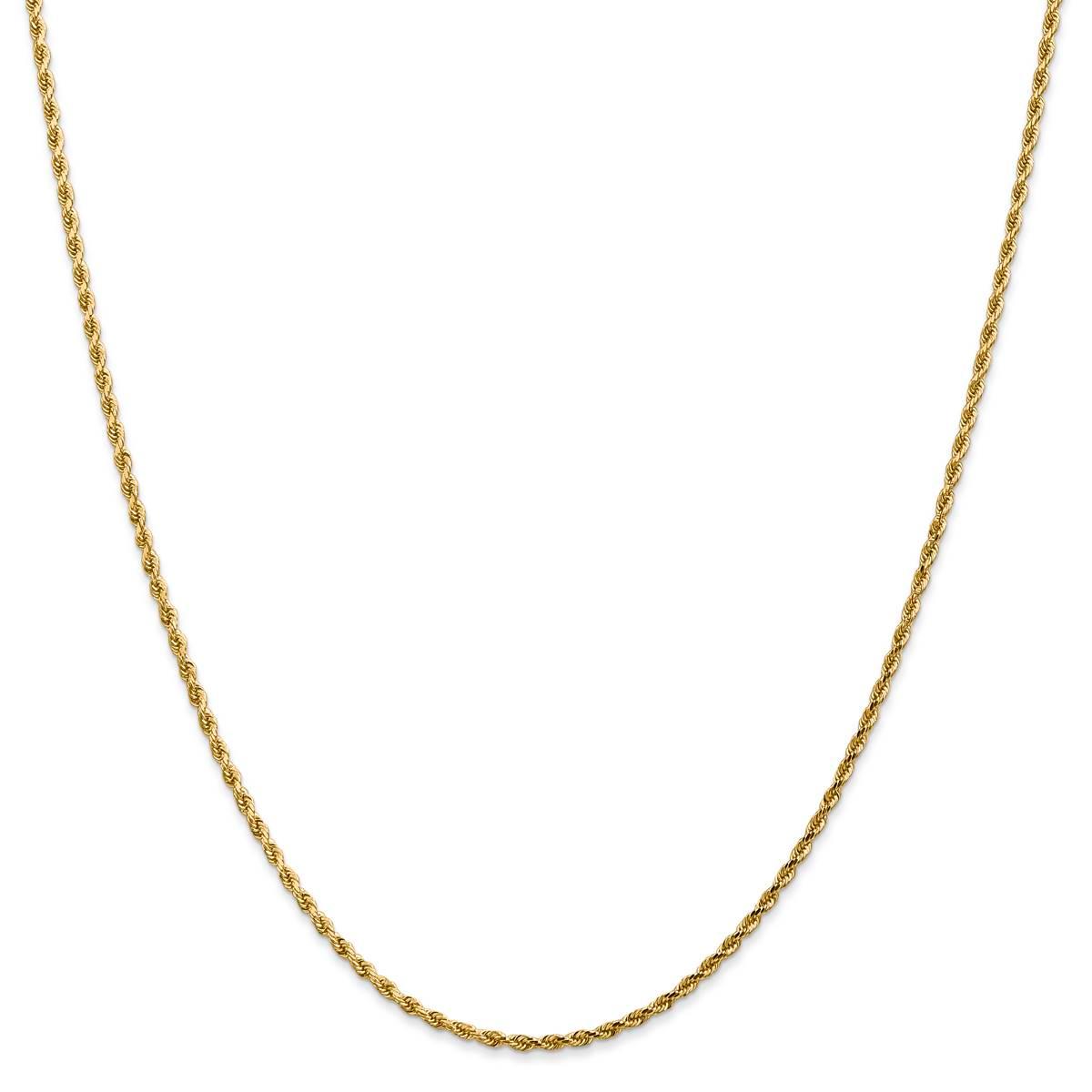 A tasteful choice for any look, this Unisex Gold Classics™ rope chain necklace is crafted from 14kt. yellow gold. Featuring a high polished and diamond-cut finish for a lasting shine, the 1.75mm wide chain necklace is great for any occasion. This solid chain necklace secures with a lobster clasp and is available in various lengths.