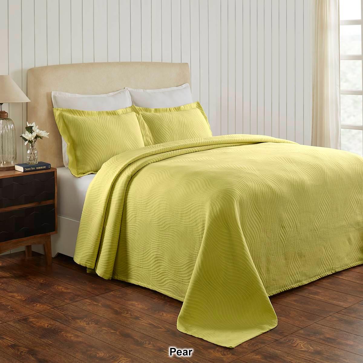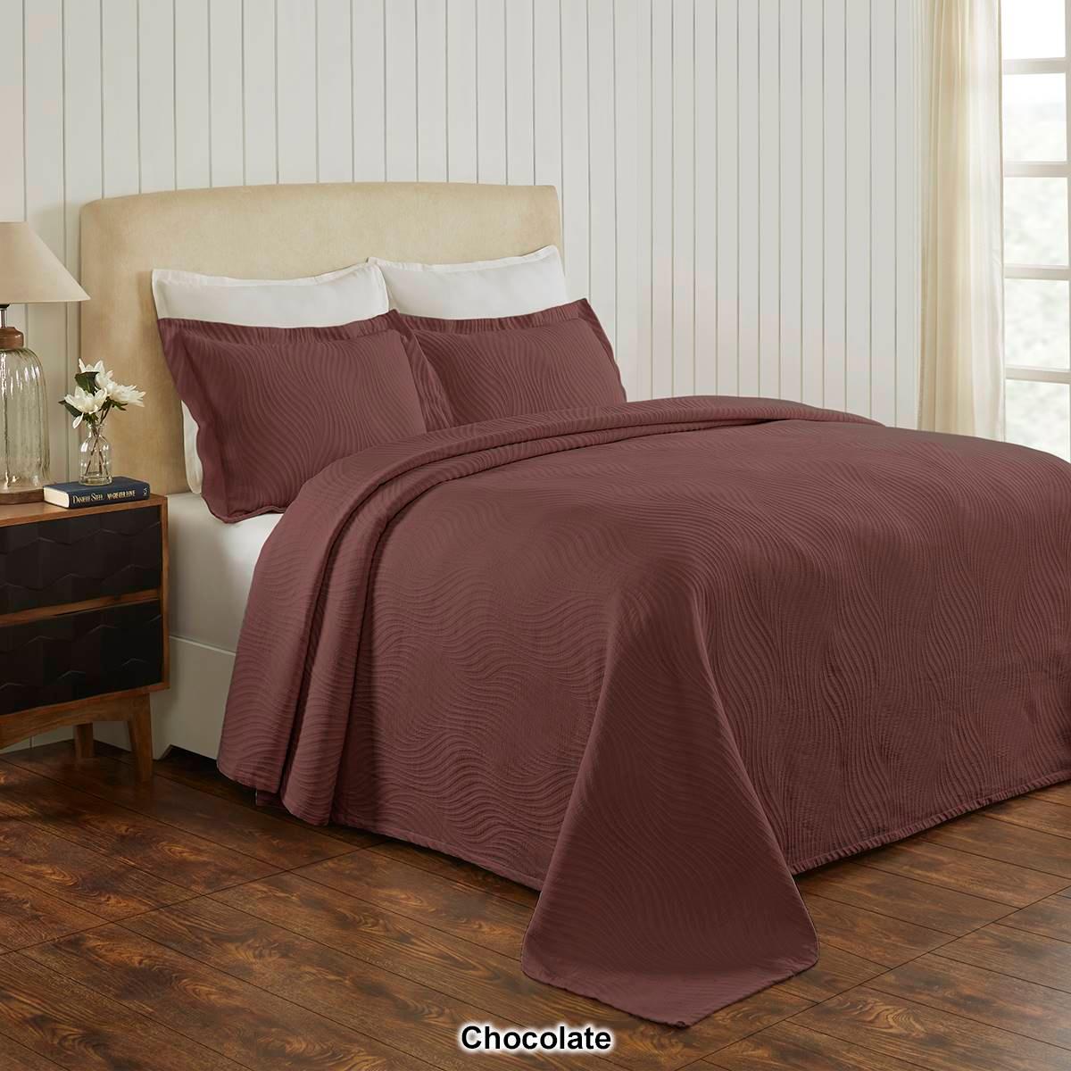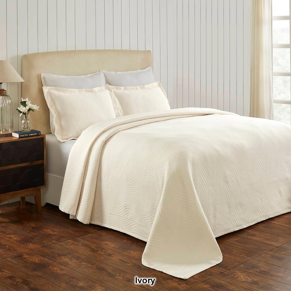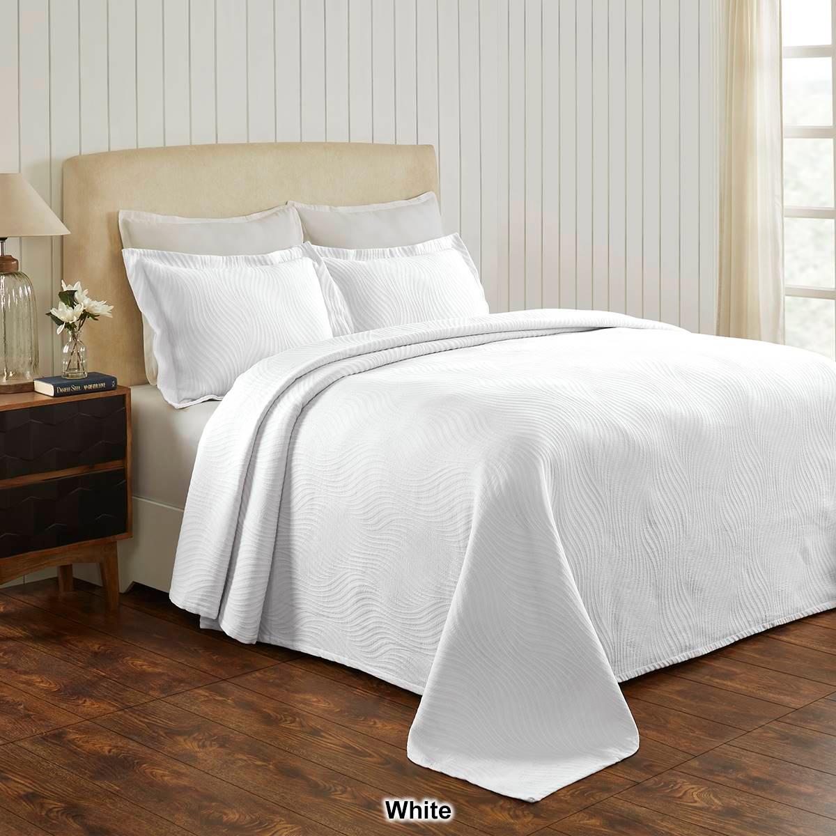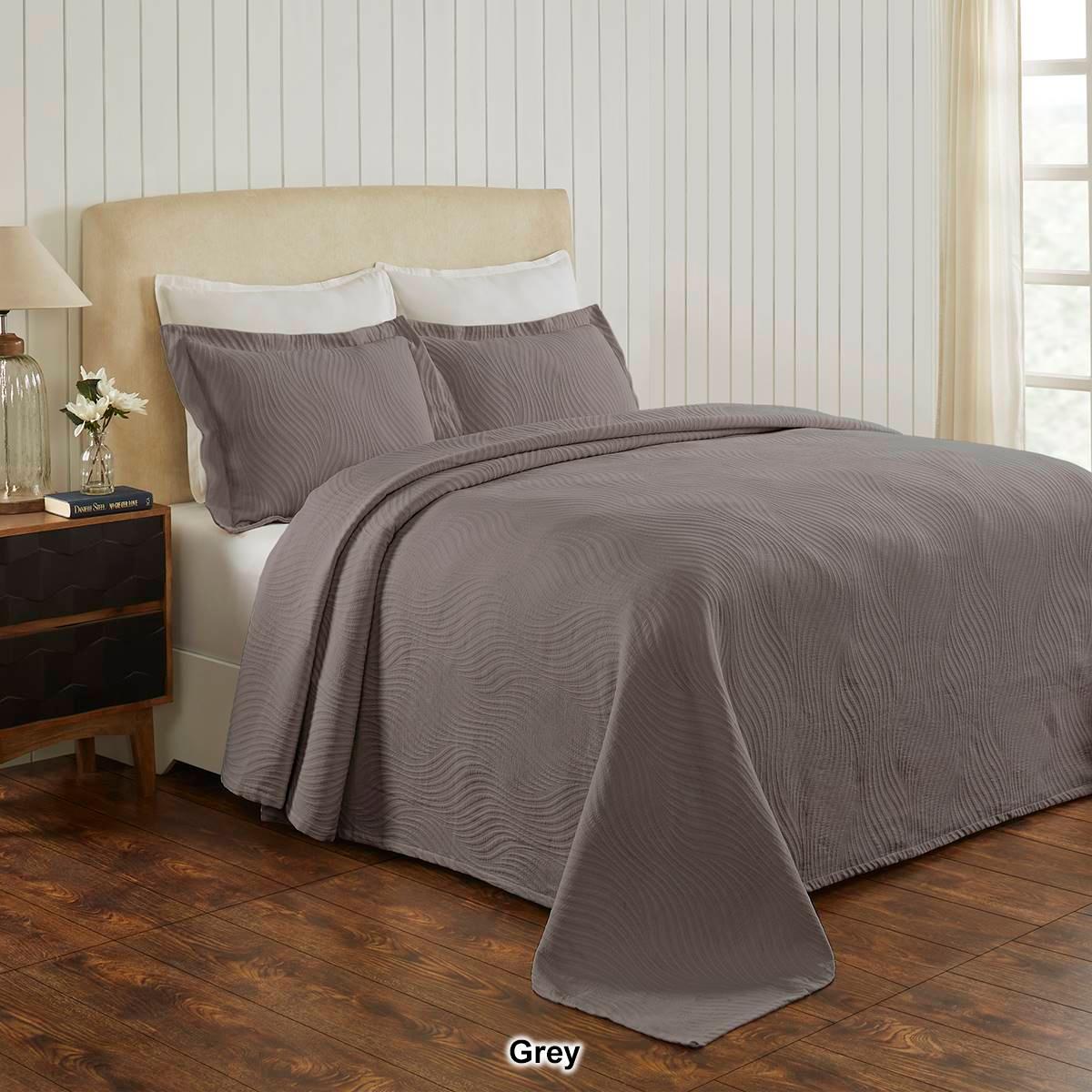 The Superior Rowlands bedspread set is the perfect way to give your bedding a casual yet comfortable update. This textured wave design is crafted from cotton and is woven into a raised matelassé pattern on a jacquard loom. Matching pillow shams mirror the design of the bedspread for a fully coordinating look.