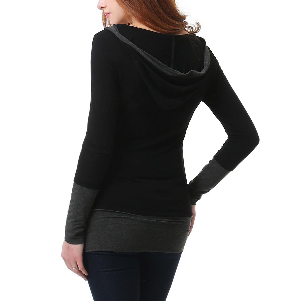 This Womens Glow & Grow® maternity hooded top features color blocking details. With a slight dome shape gently contoured to a growing bump, lightweight and stretchy, and long-sleeves this is a great everyday piece.