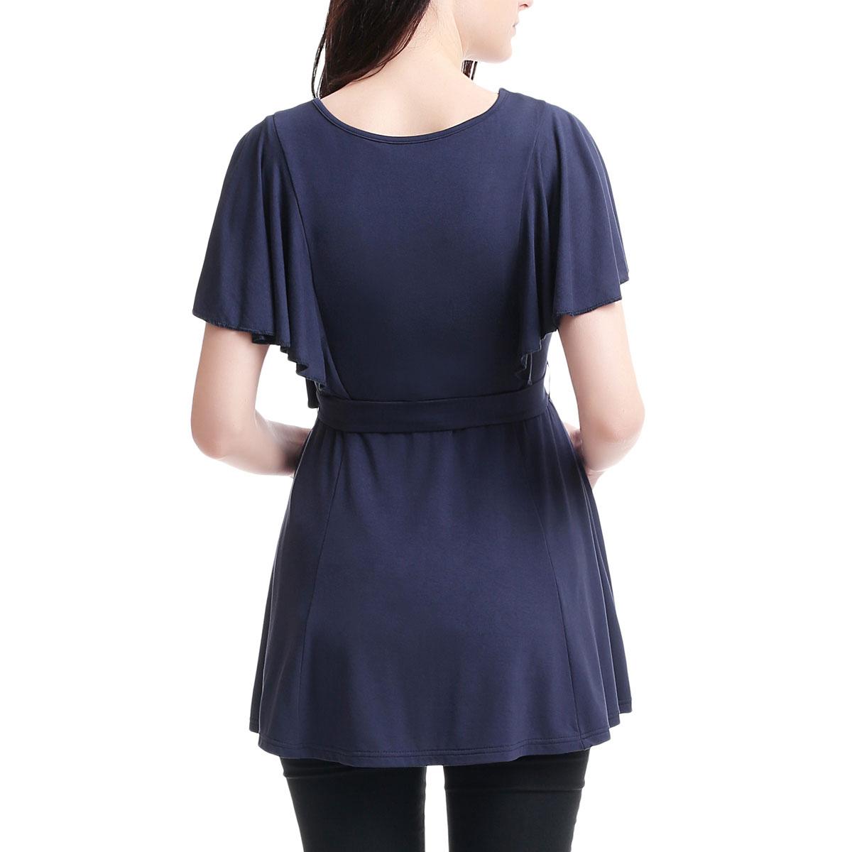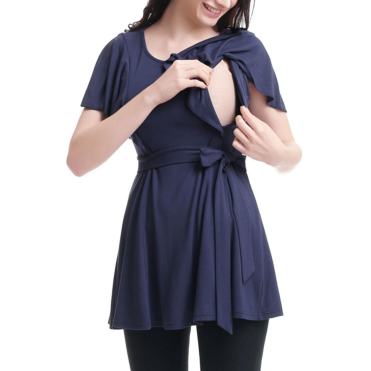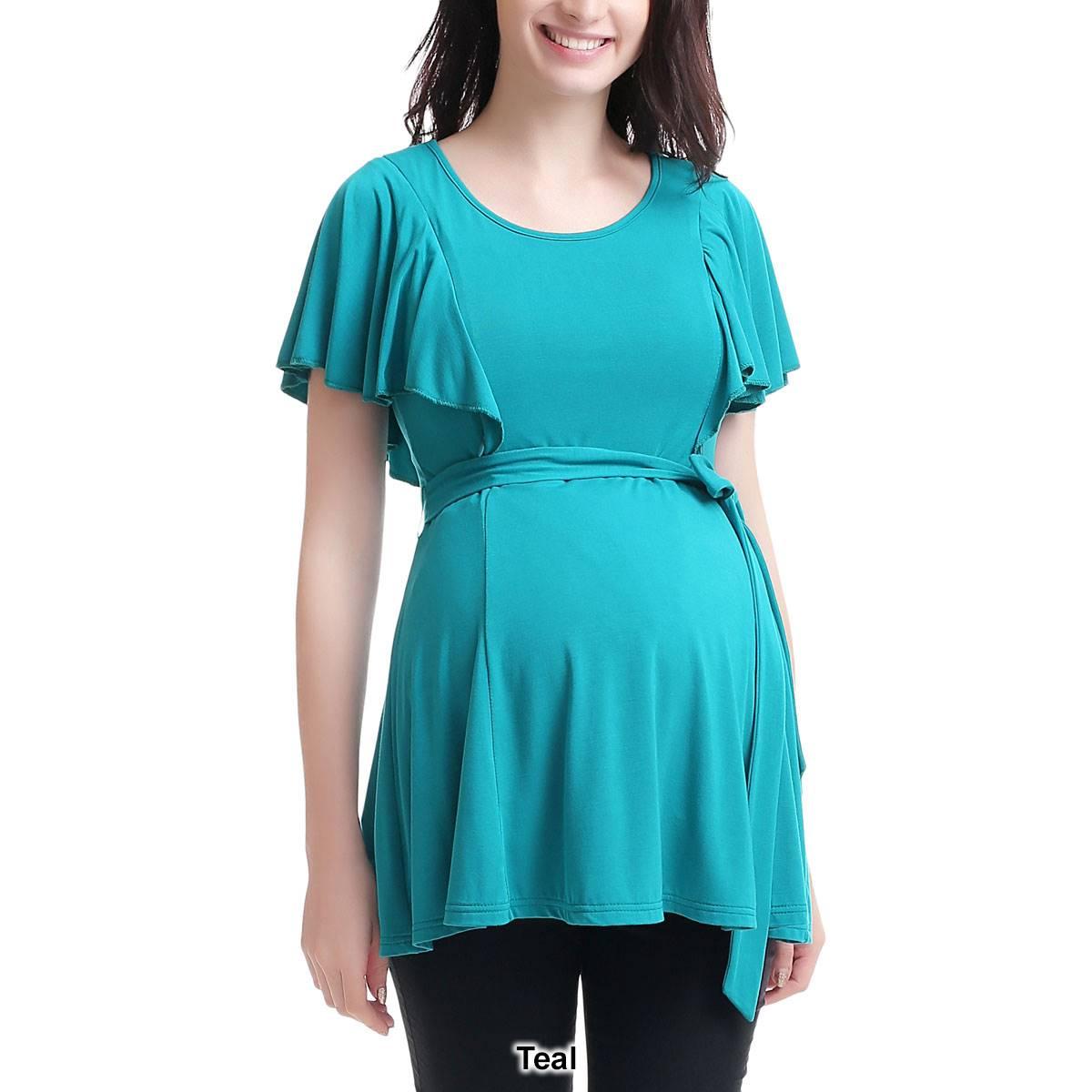 Description Flutter sleeves and a scoop neckline sweeten this Womens Glow & Grow® maternity nursing tunic top. Featuring a self-tie belt and hidden nursing zippers along the...