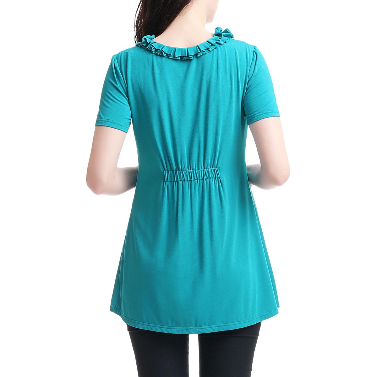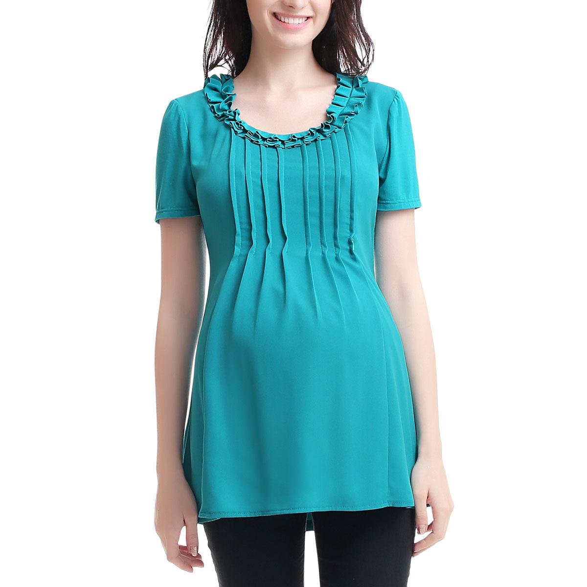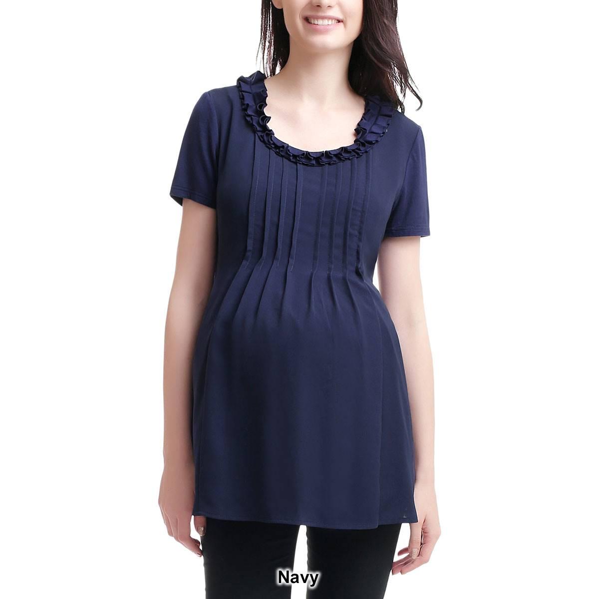 Description This flirty Womens Glow & Grow® maternity chiffon blouse cleverly conceals easy access nursing zippers along with the pintuck detail. Elastic at the back creates a...