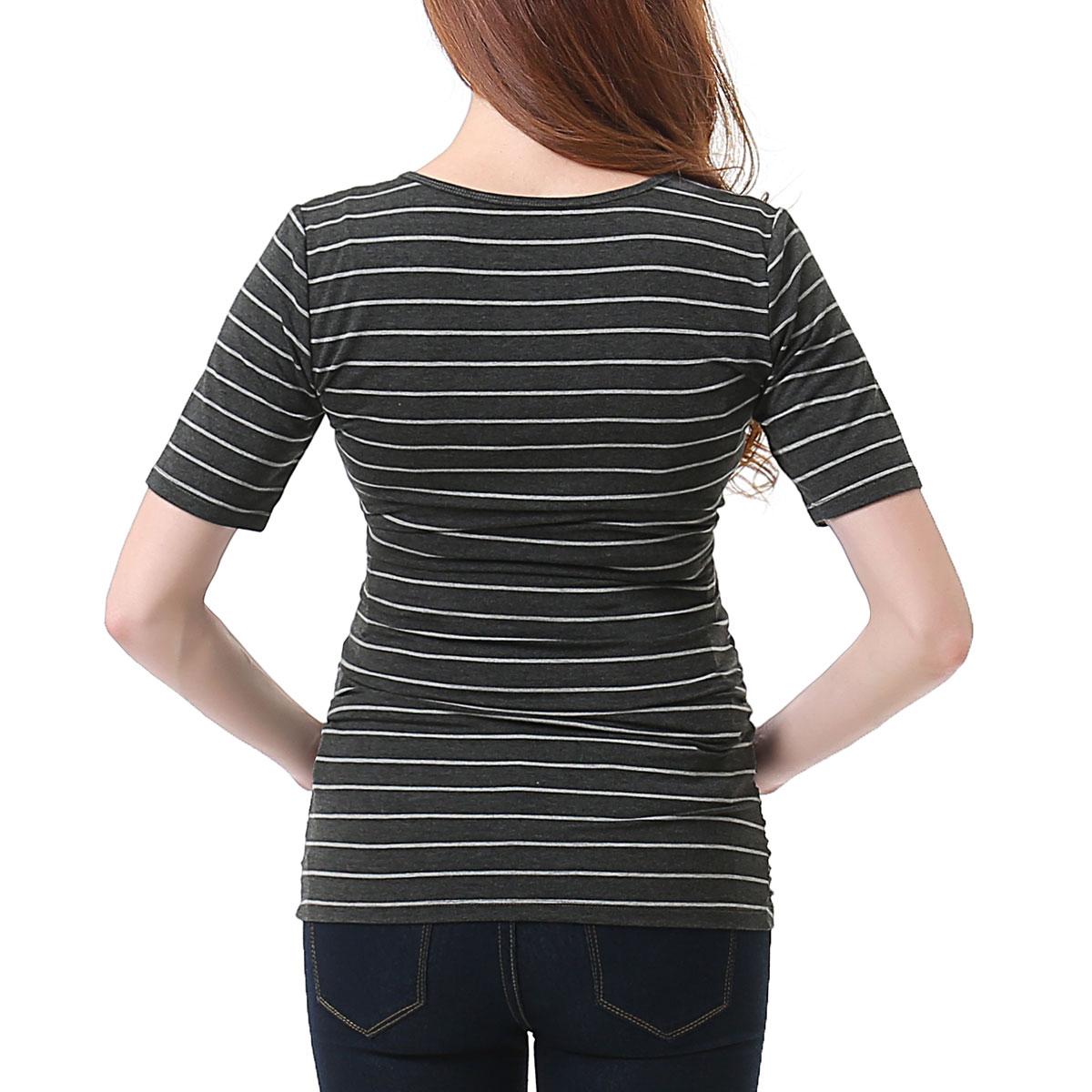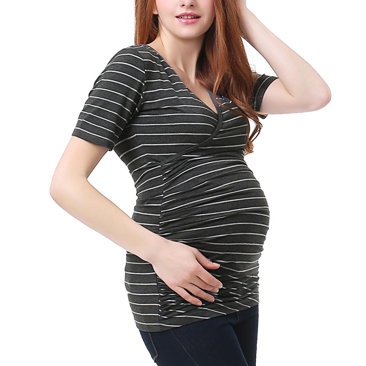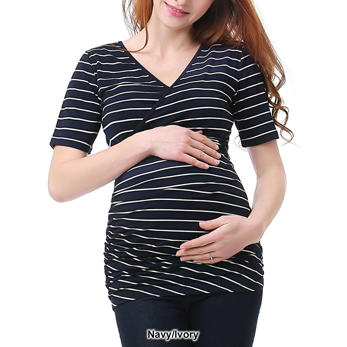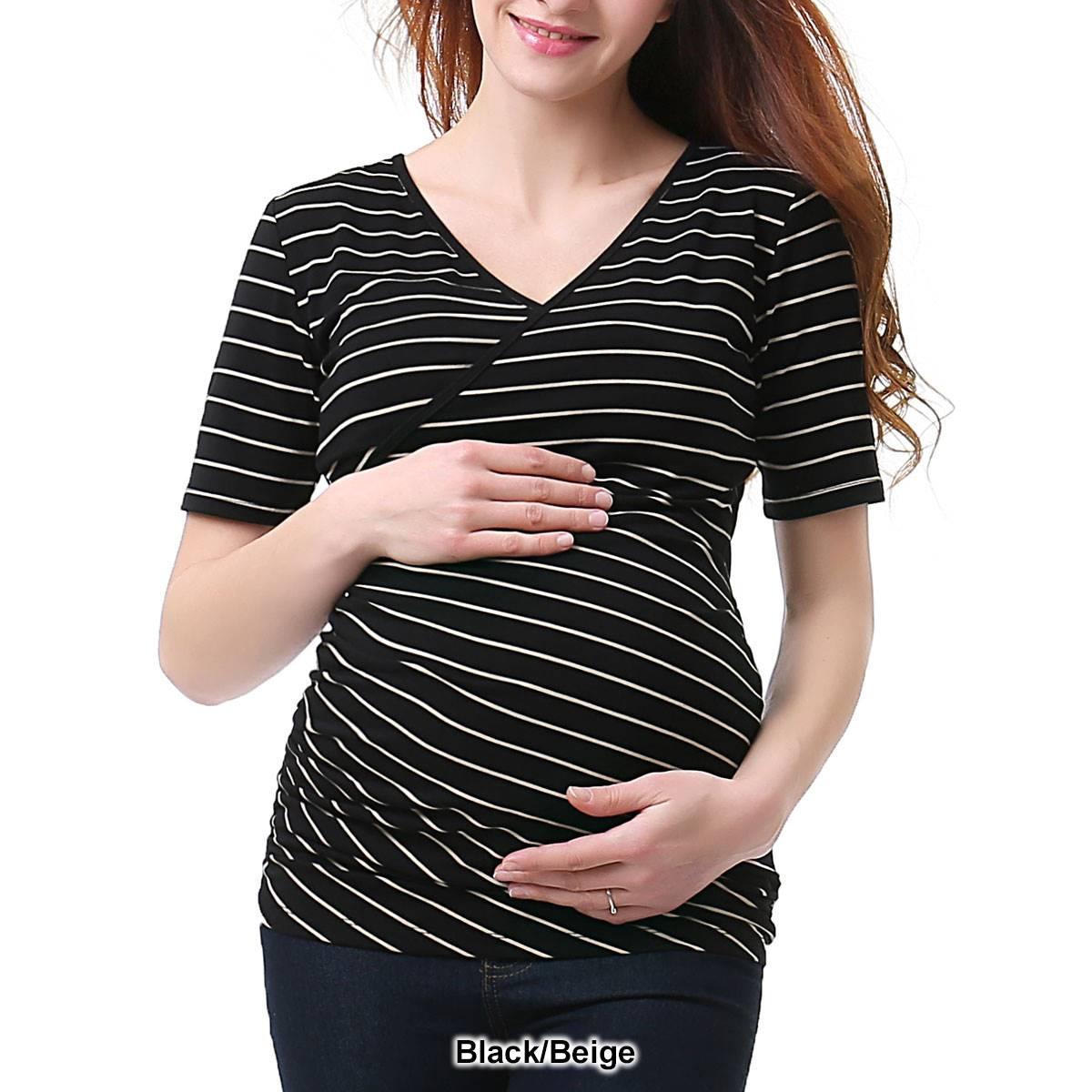 Description This Womens Glow & Grow® maternity nursing top features a stripe print for a summer classic. The comfy style features ruched sides for a flattering fit, short...