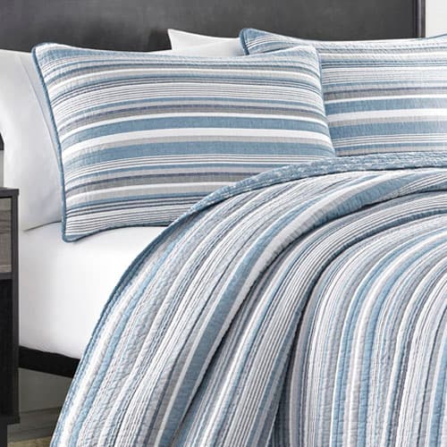Description This Nautica Jettison quilt set will update your bedding ensemble. The serene quilt and coordinating shams feature a relaxed grey, white and blue stripe design. The...