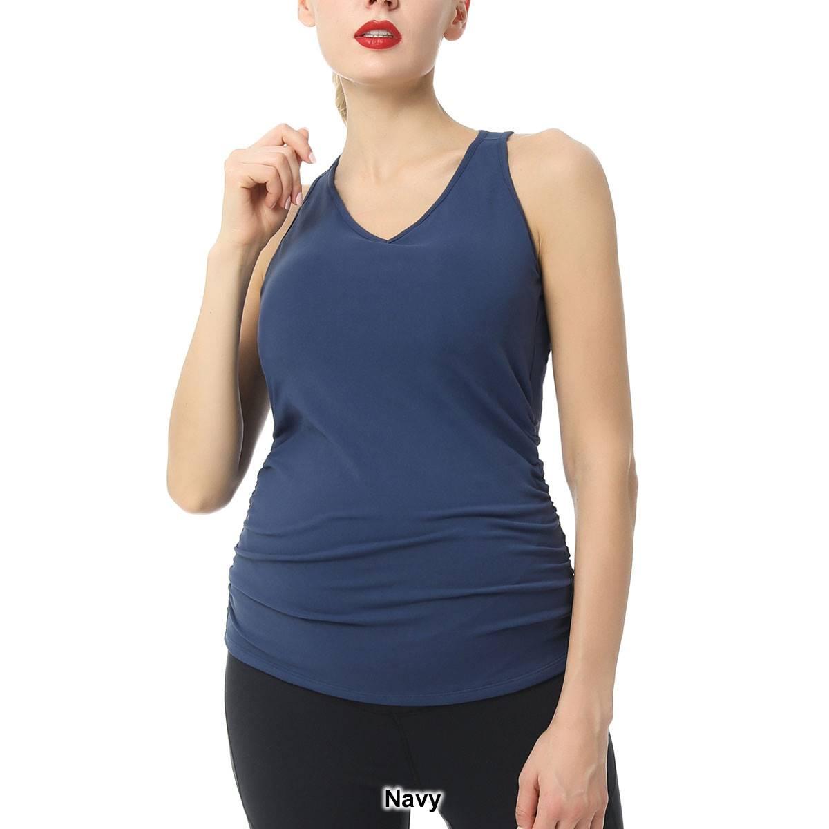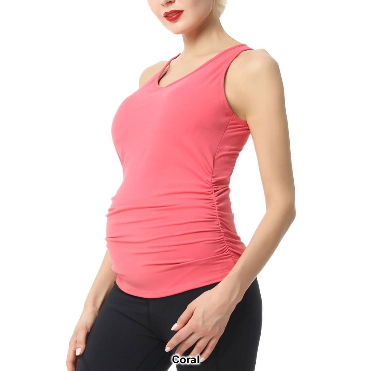 Description Back decal adds style to this fitted Womens Glow & Grow® maternity workout tank top. It is cut from soft and stretchy fabric with side ruching and a built-in bra....
