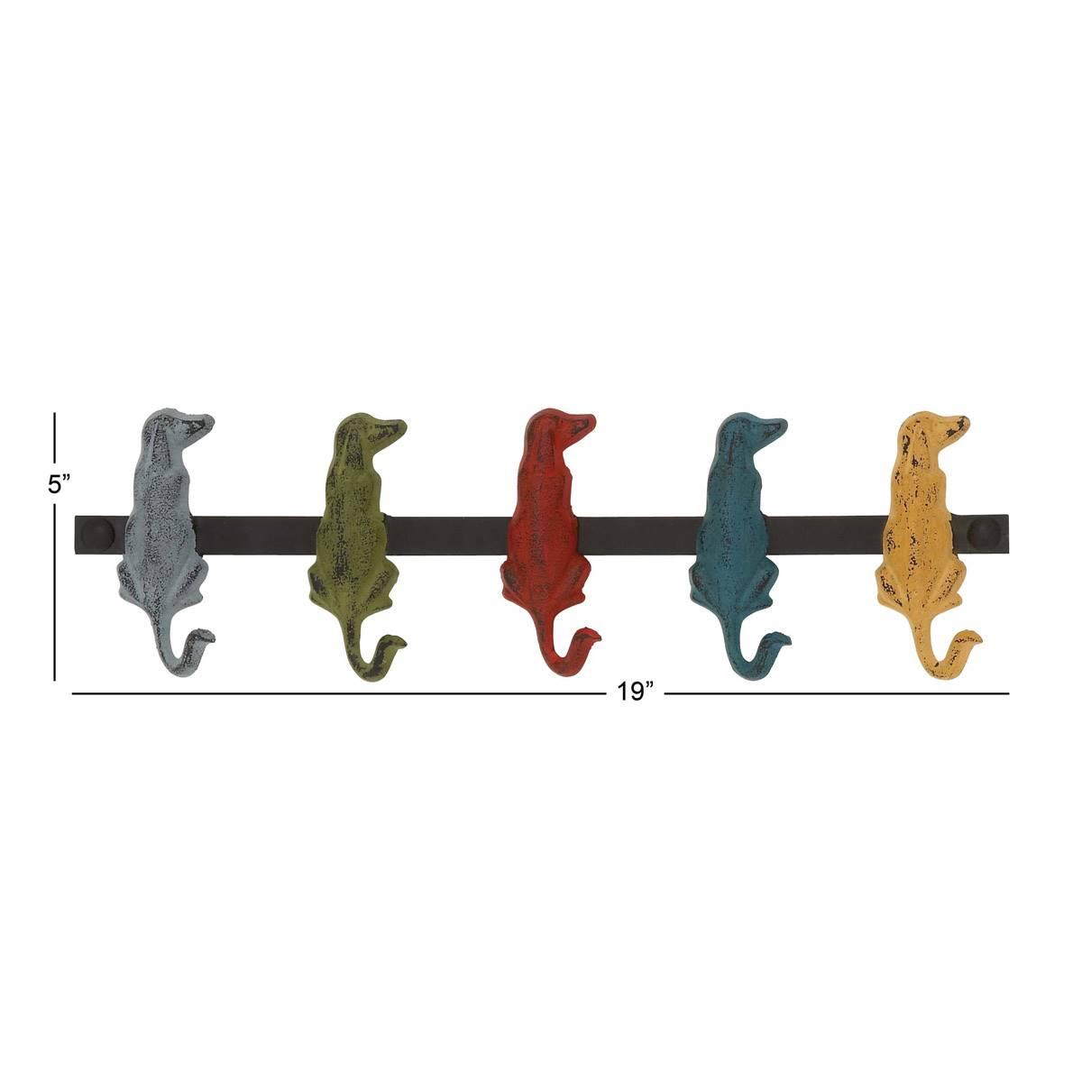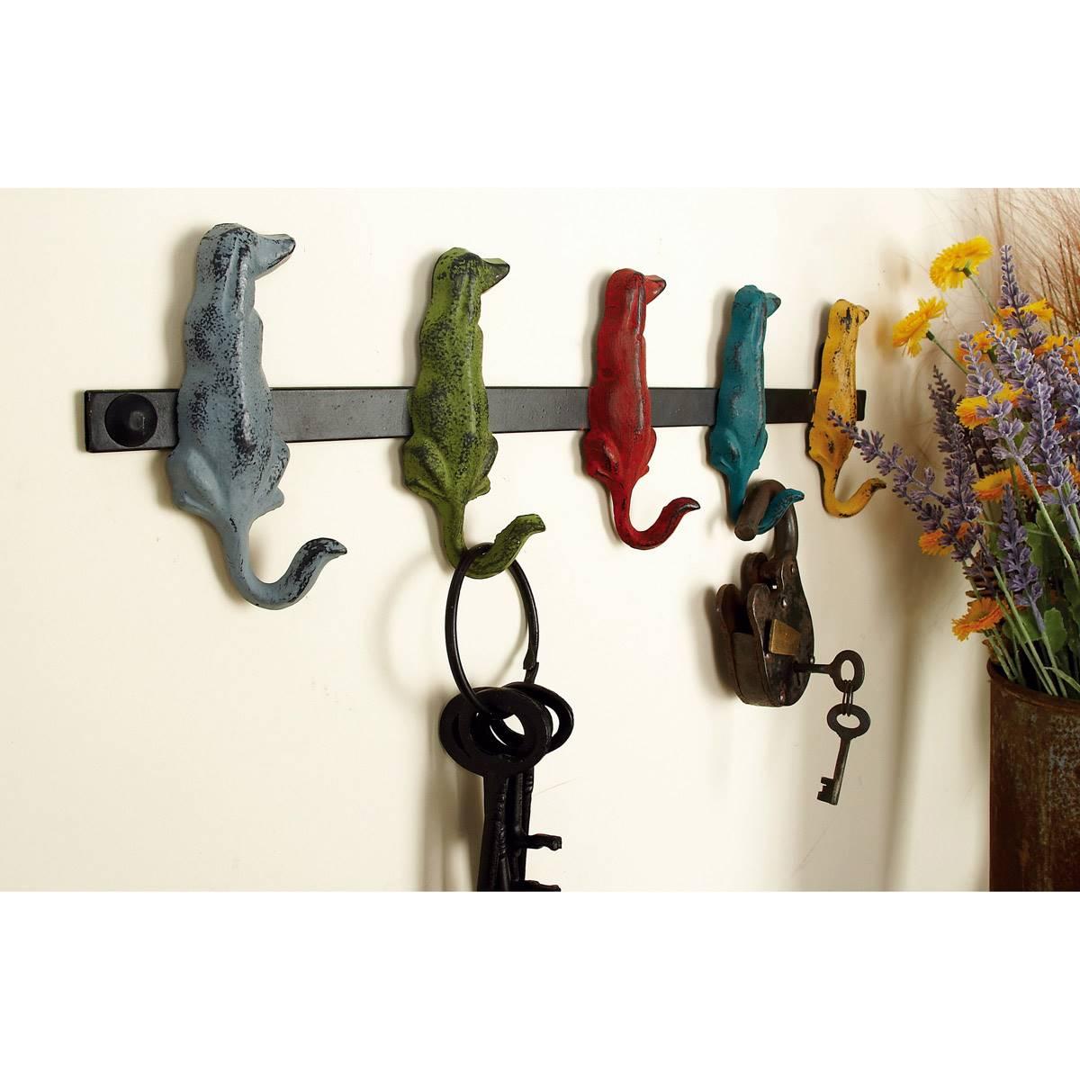 This 9th & Pike® metal wall-mounted hook is perfect for towels, aprons, robes, coats, clothes, and keys help with this goal. It´s made of distressed-looking iron and carries 5 hooks, all with a dog´s silhouette. Use it against plain-colored and -textured walls to best appreciate its colorful design.