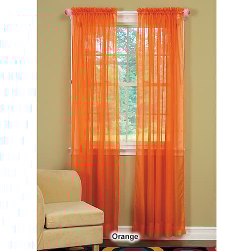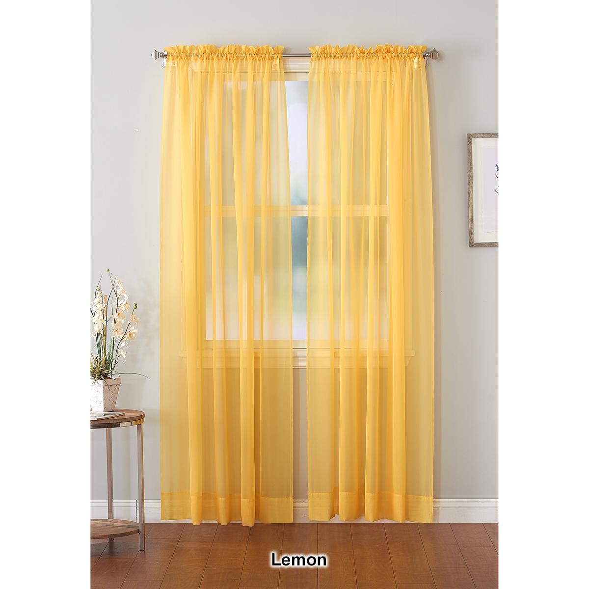 Description Calypso Voile sheer, rod pocket curtain panel is sure to add vibrant color to any room. One panel per package. 100% Polyester. Machine wash. Tumble dry. Sizes: 59x63...