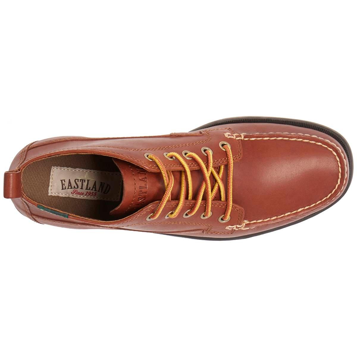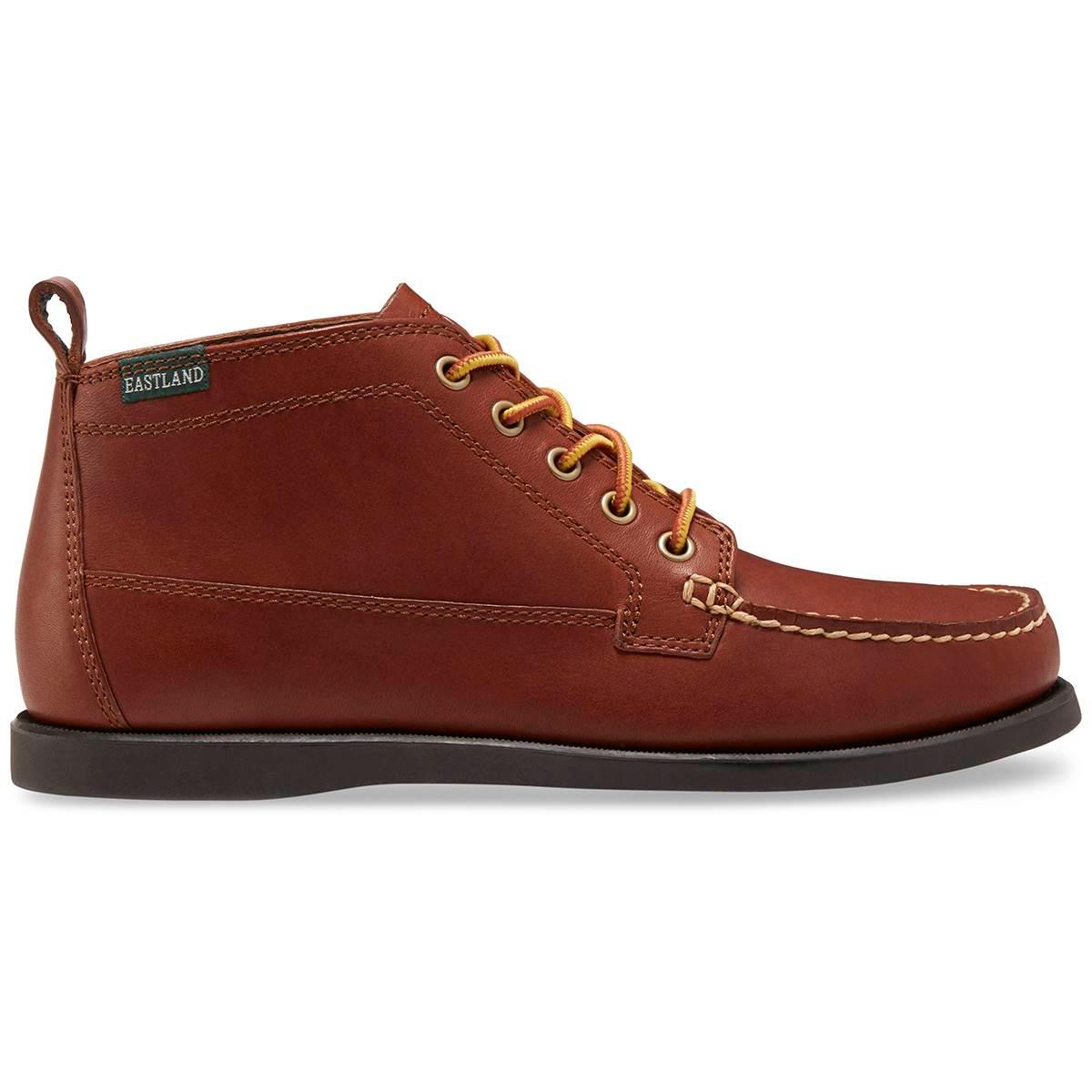 These Mens Eastland classic Seneca five-eye chukka boots are perfect for weekends at the lake or everyday rambling. Featuring handsewn moccasin construction with easy to care for soft and smooth leather upper. With exclusive active Memory Foam comfort insole that supports and conforms to the curves of your foot. Shock-absorbing, the flexible natural rubber outsole offers durability and traction.