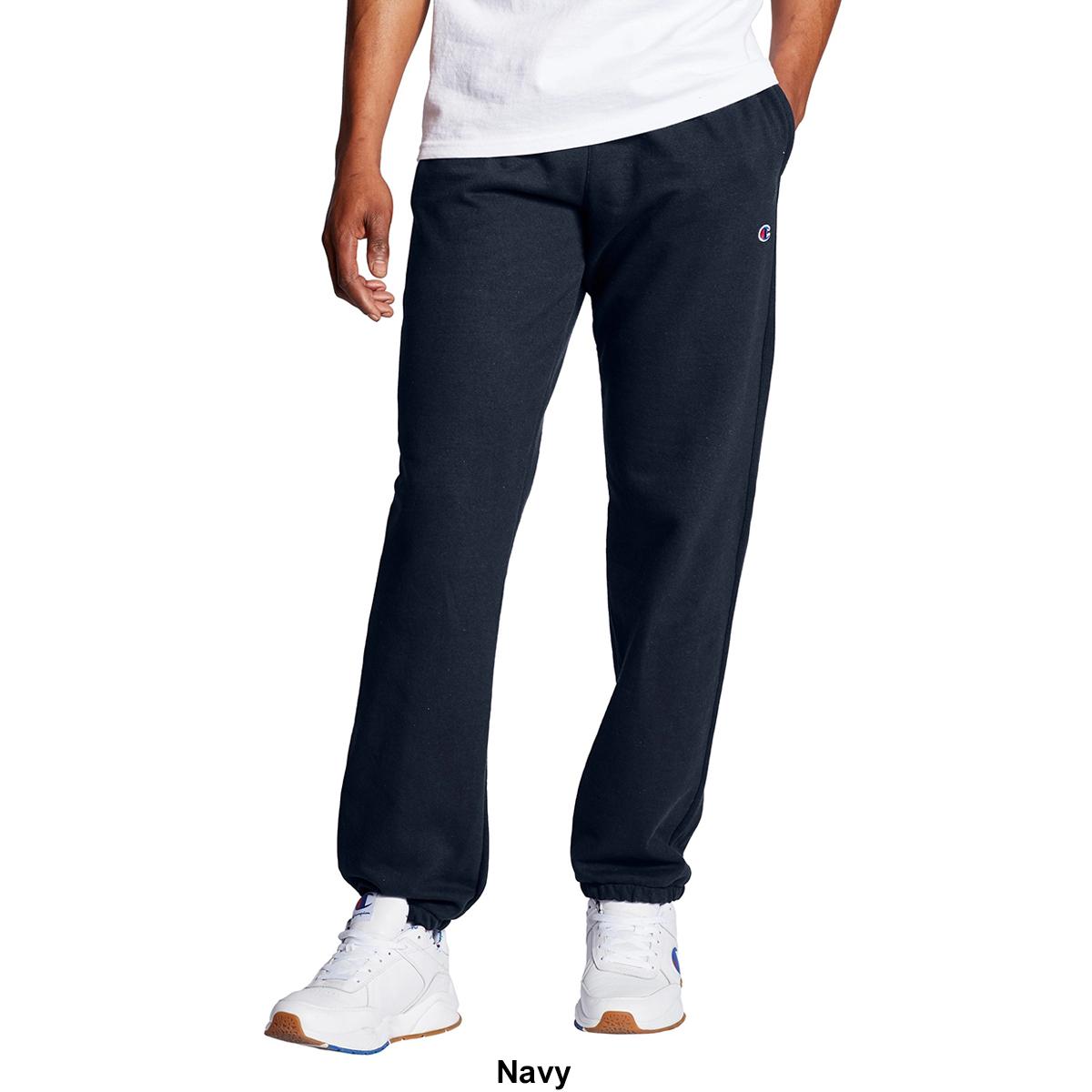 Description Update your casual attire with these Mens Champion® Powerblend® cuffed sweatpants featuring a drawstring elastic waistband, two side seam pockets, and a soft...