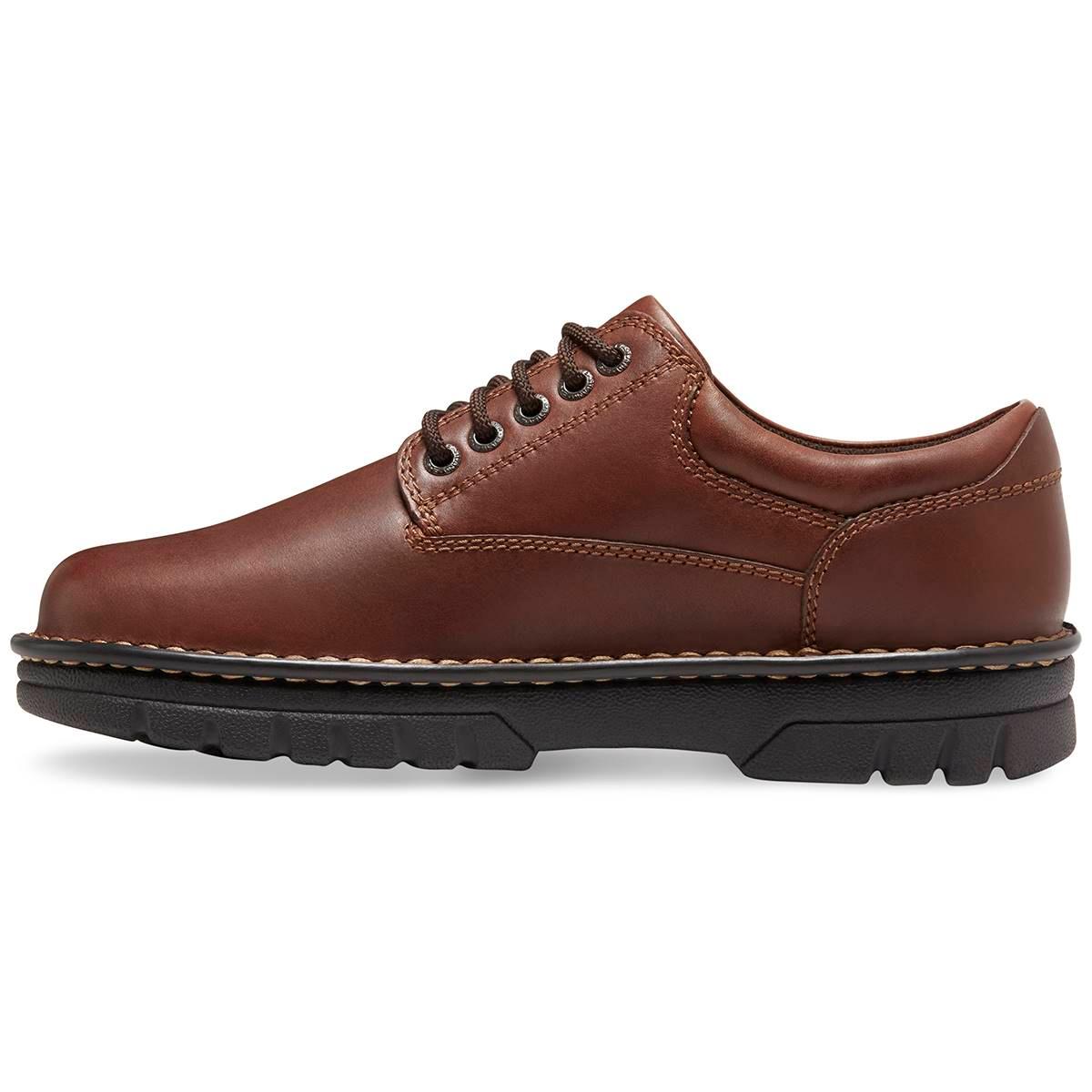 These Mens Eastland Plainview Oxfords feature a timeless original that delivers all-day comfort and versatile casual or dress style. Featuring a padded collar and 5-eyelet lace up for a custom fit. Removable, cushioned insole with super soft comfort zones does away with over-stressed feet and shock absorbing Polyurethane outsole offers lightweight durability and traction.