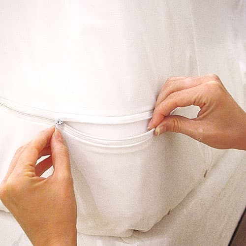 The 3-layer microporous fabric effectively blocks dust mite allergens. Exclusive ultrasonic seam technology is extra secure. The fabric is quiet and comfortable. Hypoallergenic. Machine wash.