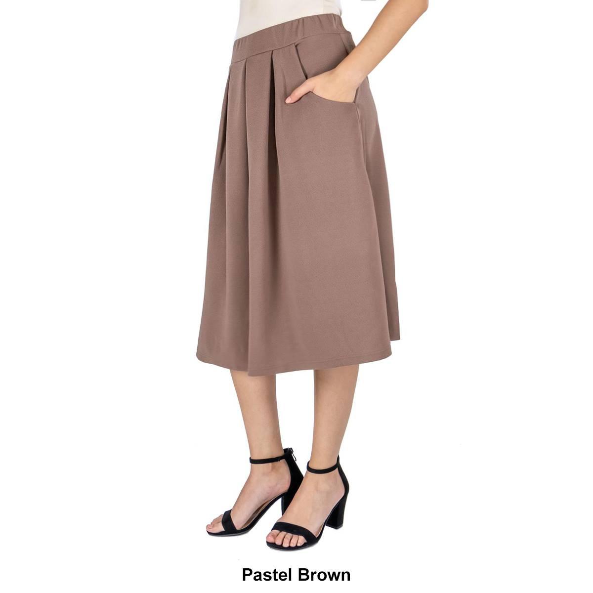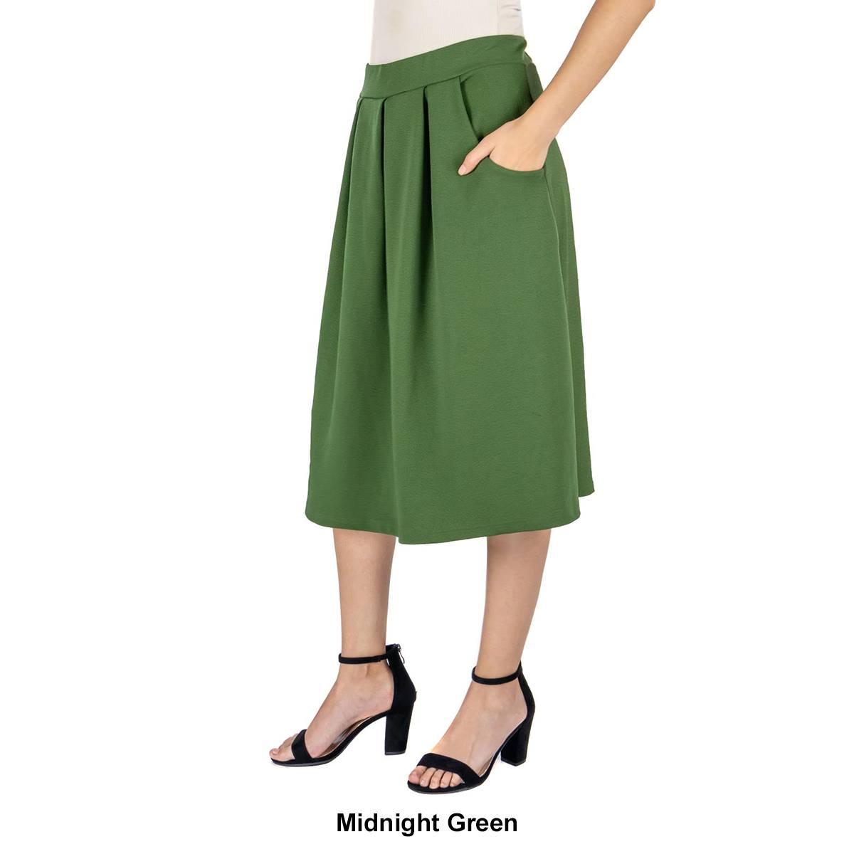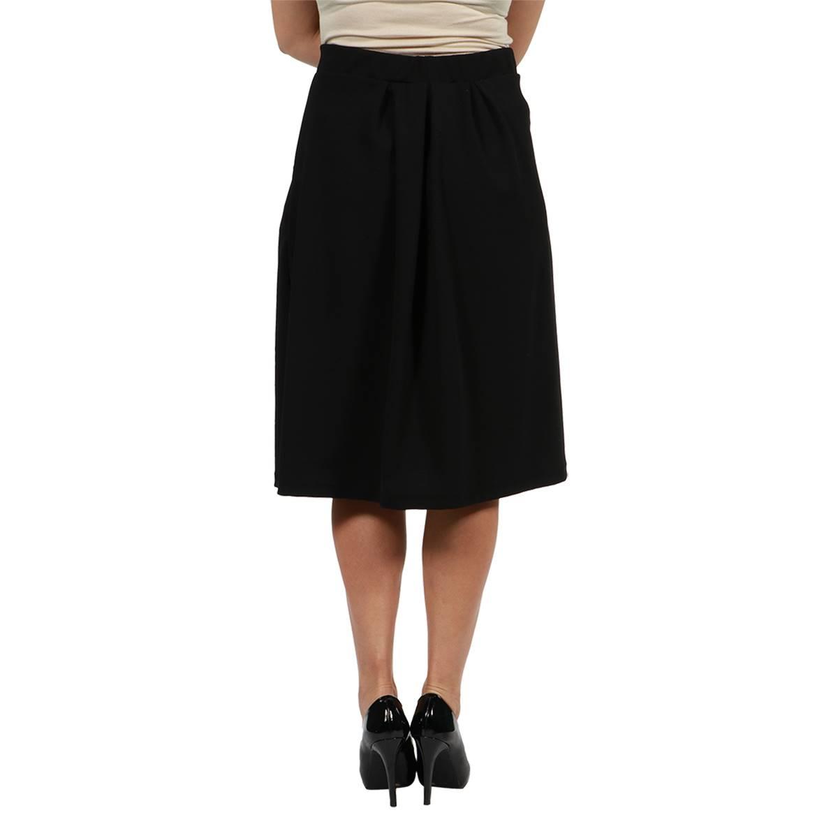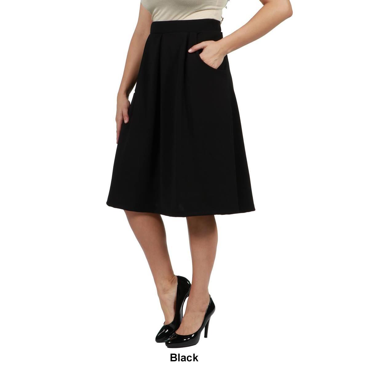 Description This Womens 24/7 Comfort Apparel classic black skirt is a wardrobe must have. This knee length skirt features an elastic waist, pockets, pleating, and a comfortable...