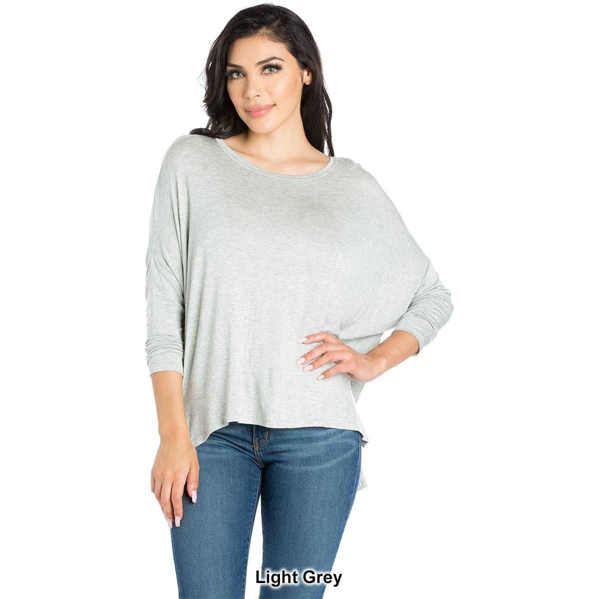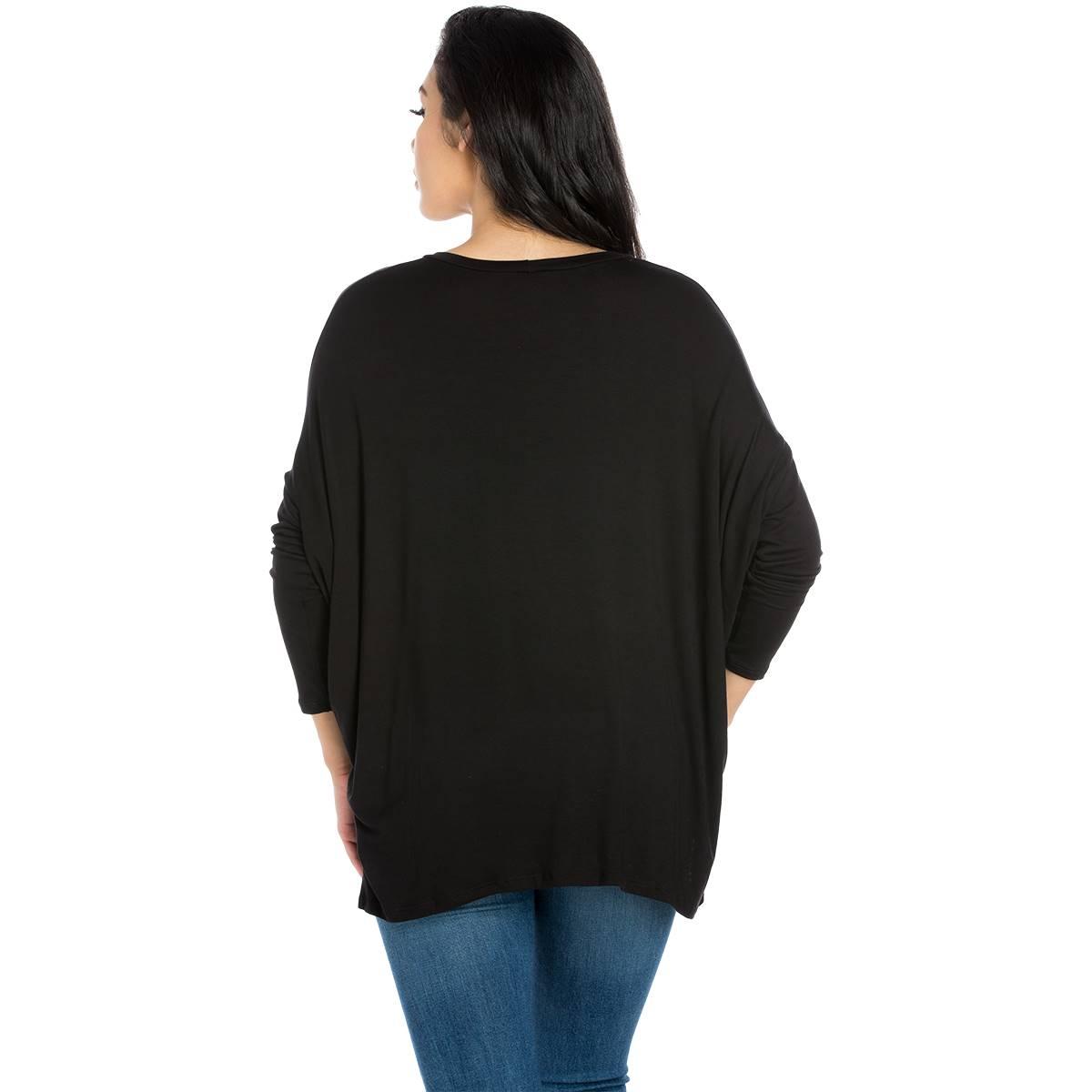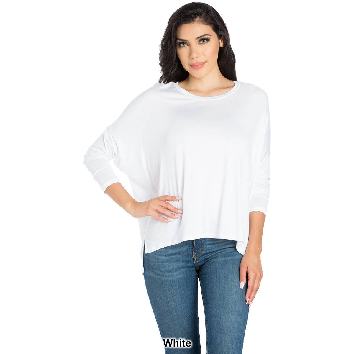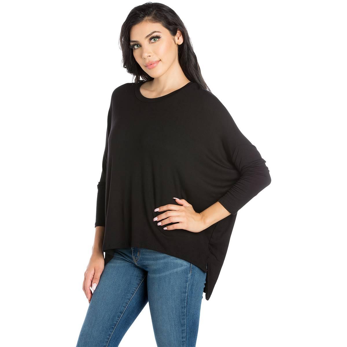 This comfortable Womens 24/7 Comfort Apparel dolman tee features an oversized silhouette. In a stretchy and lightweight material, with long sleeves, a wide rounded neckline, and loose boxy fit, this top is easy to wear.