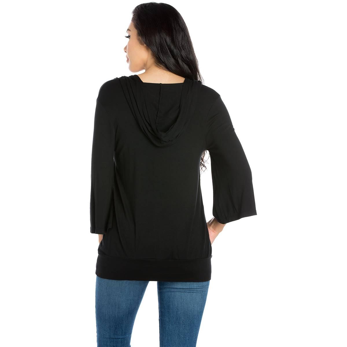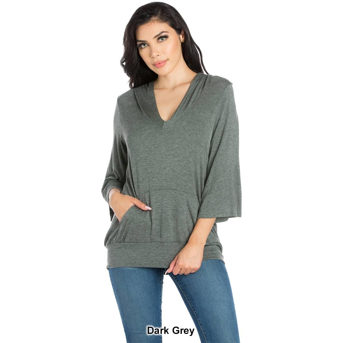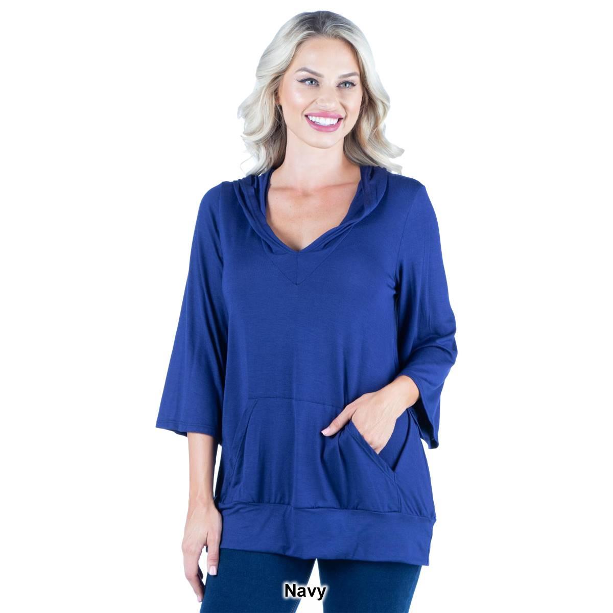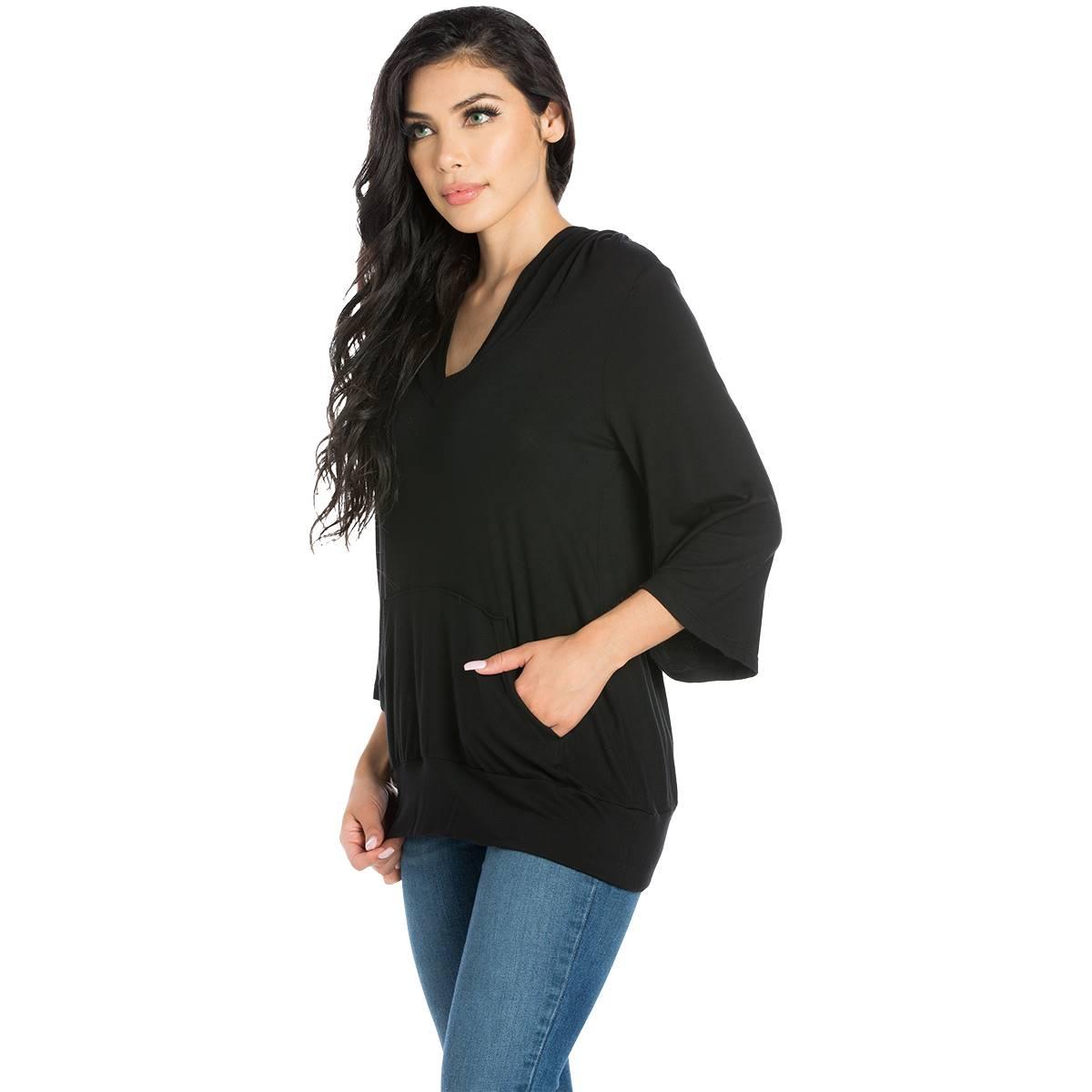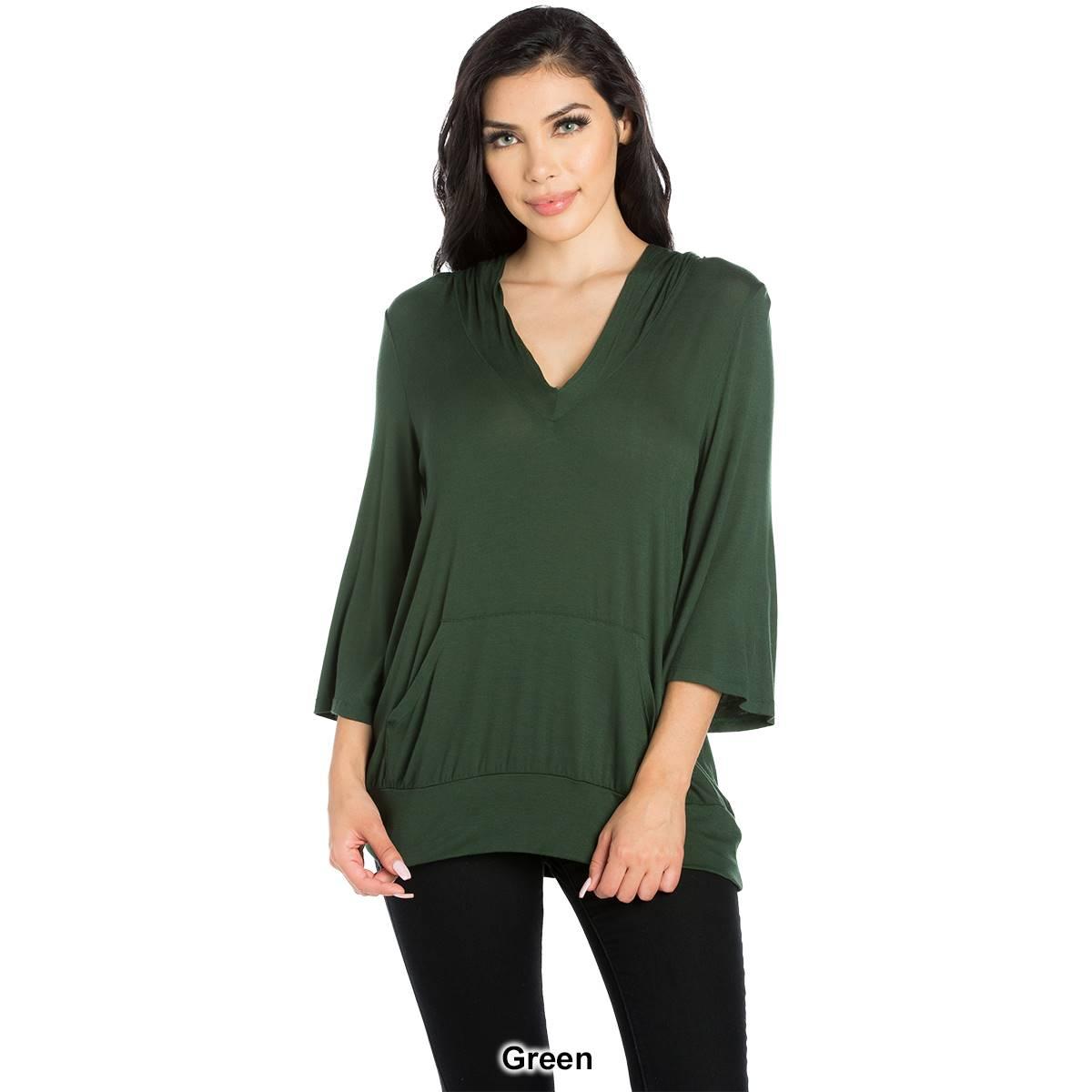 Description Relaxed and comfortable as can be, the Womens 24/7 Comfort Apparel oversized hoodie features 3/4 length loose sleeves, front pocket, v-neck, and a trendy look. This...