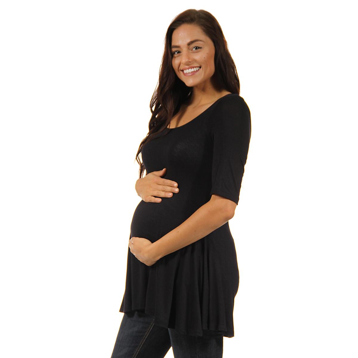 Description This Plus Size 24/7 Comfort Apparel pullover-style tunic maternity top flows with the body with its trendy, loose design. The neckline scoops for a sexy spice but...
