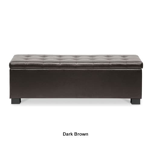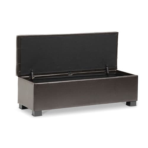 Description This Baxton Studio Roanoke contemporary ottoman boasts a black bonded leather exterior over a genuine eucalyptus wood frame. Its cushioned comfort is achieved via...