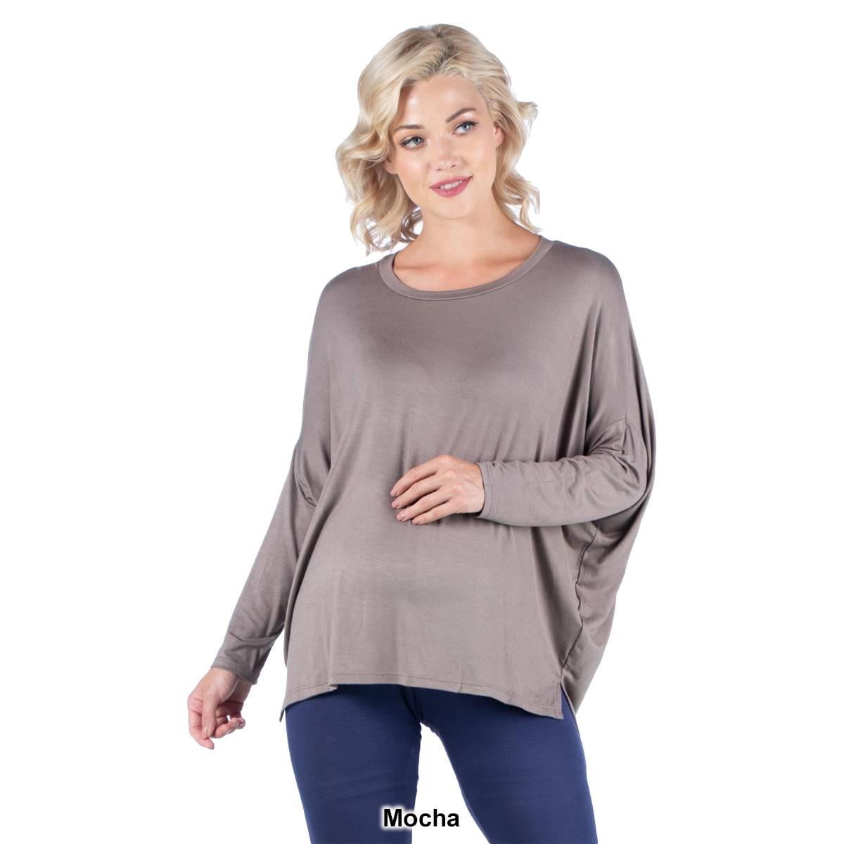 Description This comfortable Plus Size 24/7 Comfort Apparel dolman maternity top features an oversized silhouette. In a stretchy and lightweight material with long sleeves, a...
