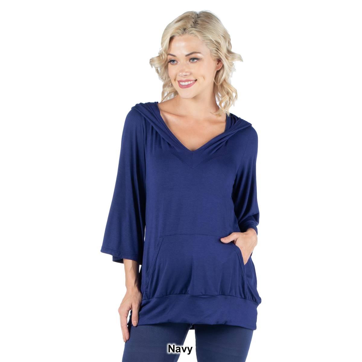 Description This classic Womens 24/7 Comfort Apparel oversized solid maternity hoodie will always be in style. The sleek look has a scoop rounded neckline and 3/4 length loose...