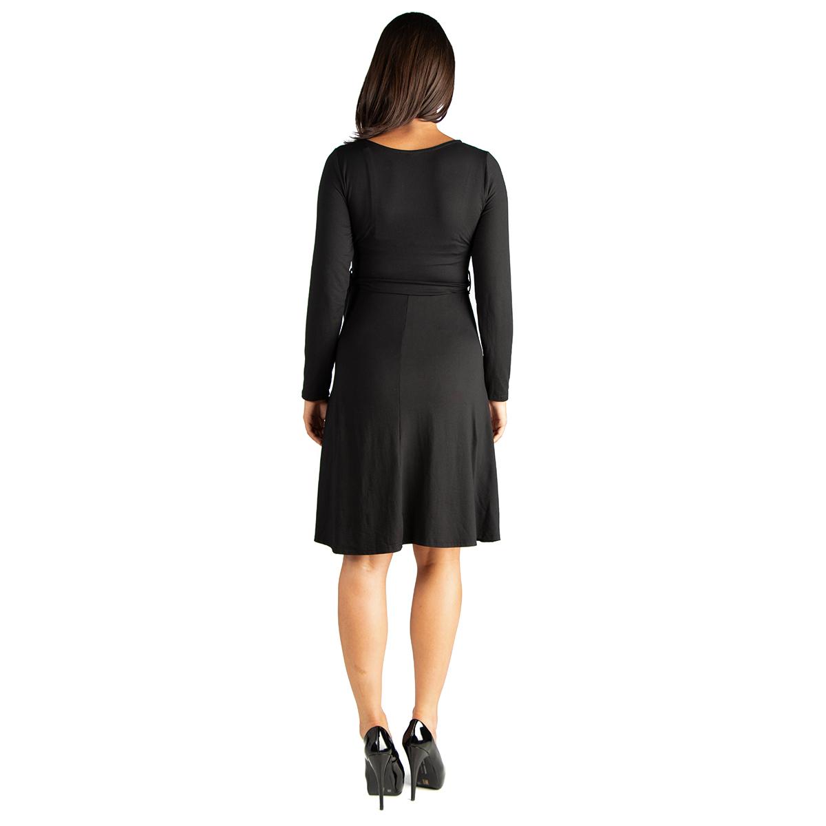 Description This Womens 24/7 Comfort Apparel maternity v-neck belted dress hits just above the knee and features a classic wrap-style closure and construction, a surplice...