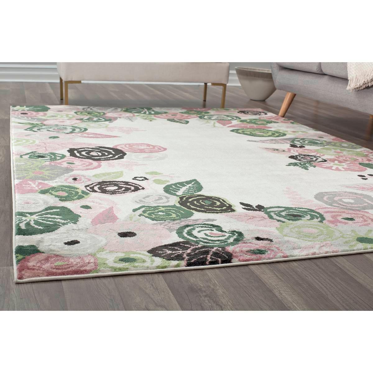 Description Inspired to capture this interesting play of light and dark, this Rugs America™ Valentina royal blossom pink ivory floral transitional area rug mimics the high and...