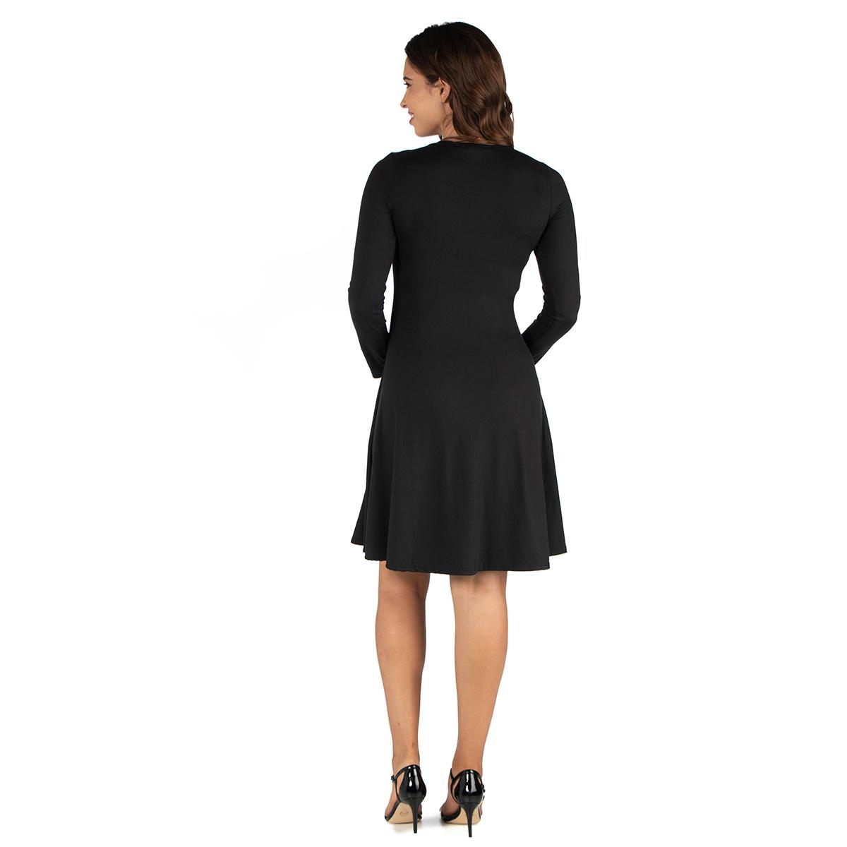 Description This Plus Size 24/7 Comfort Apparel a-line mini maternity dress will always be in style! The sleek look has a scoop neckline and long sleeves. This cute and...