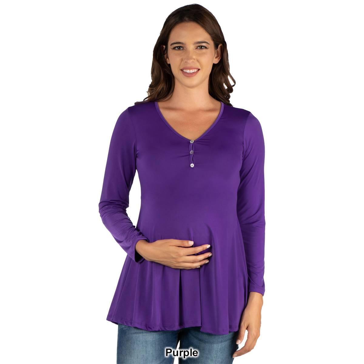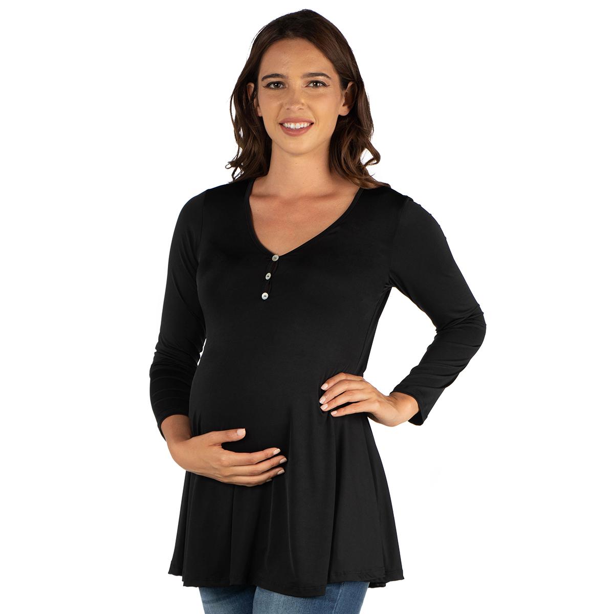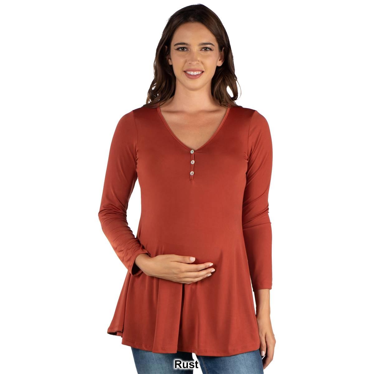 Womens 24/7 Comfort Apparel Flared Henley Tunic Maternity Top
