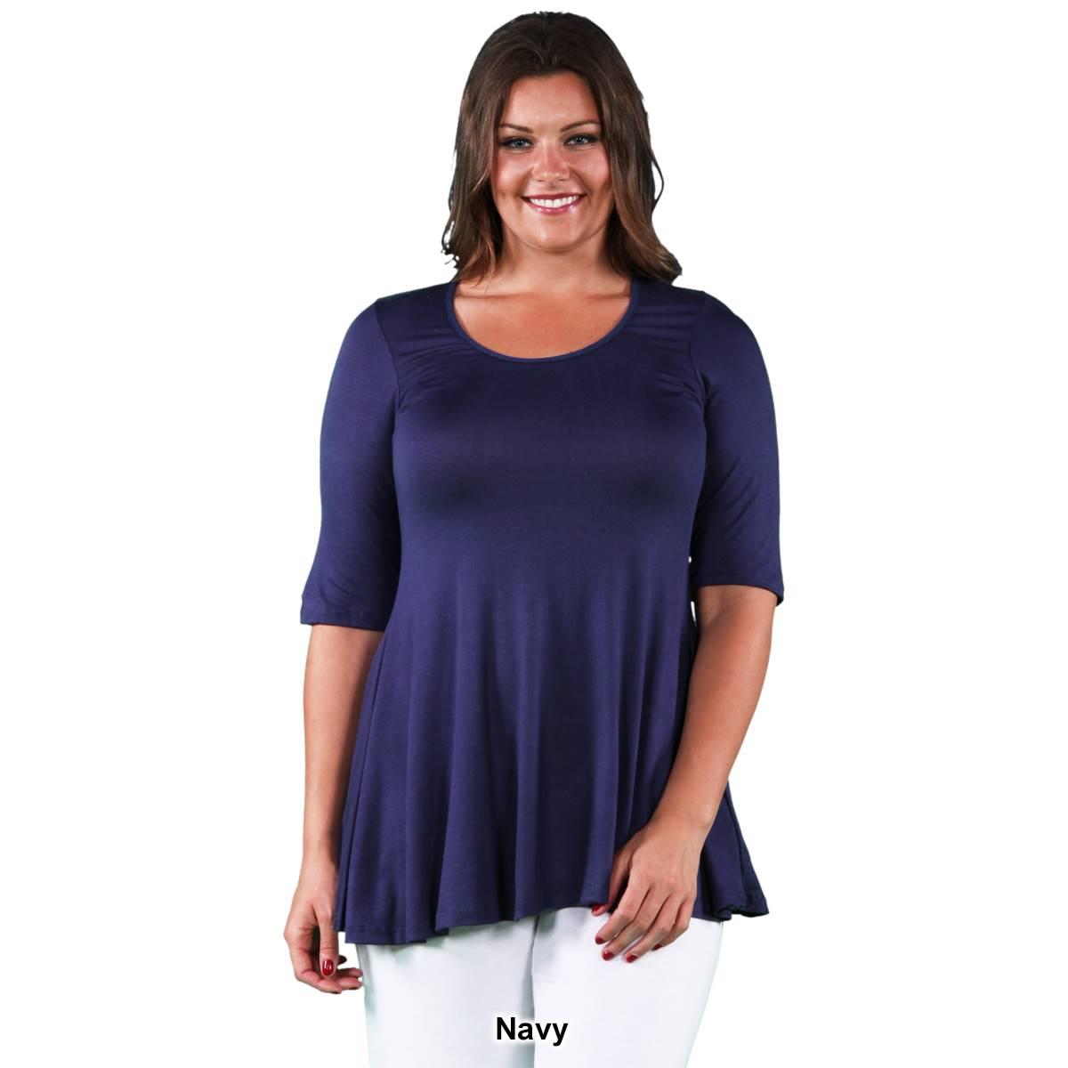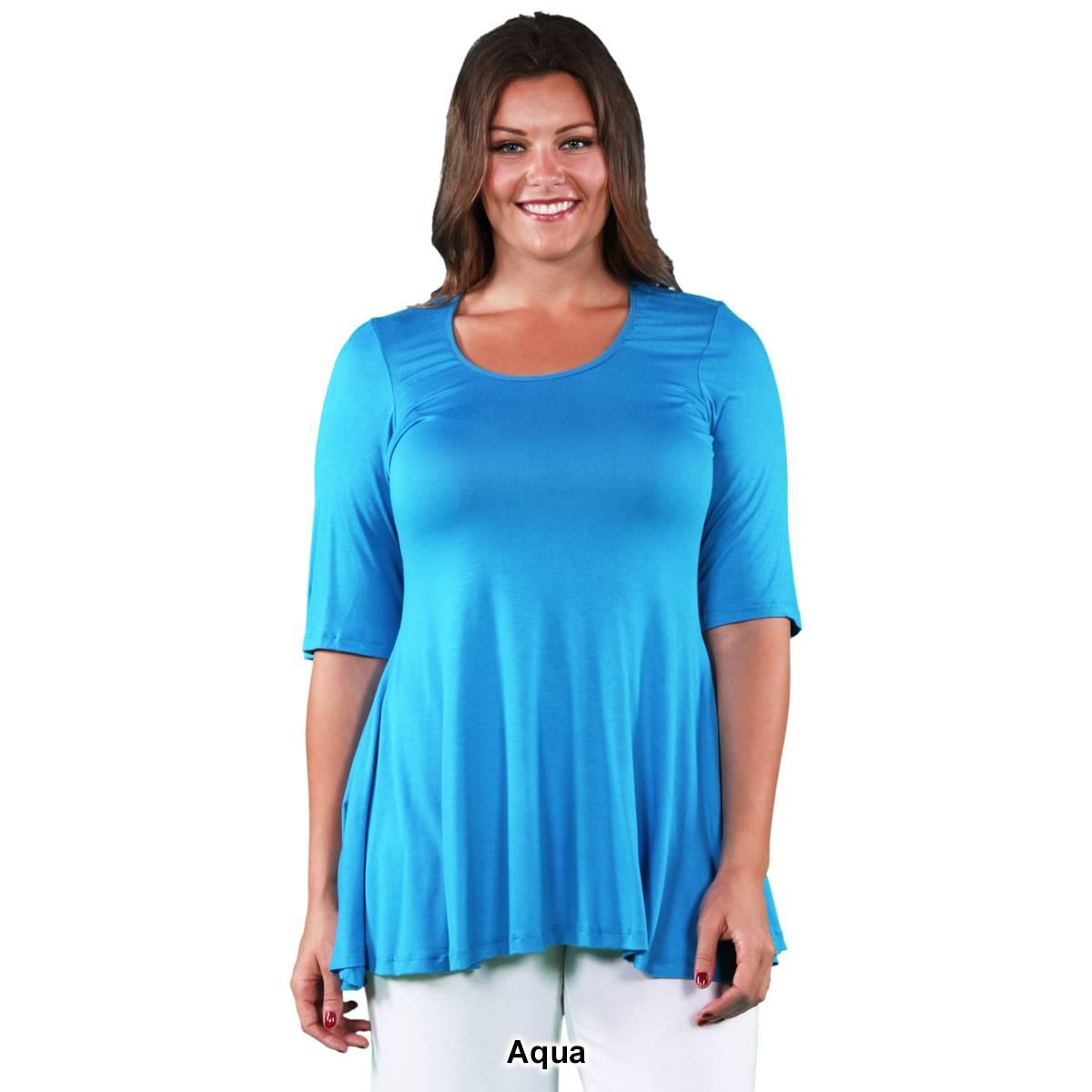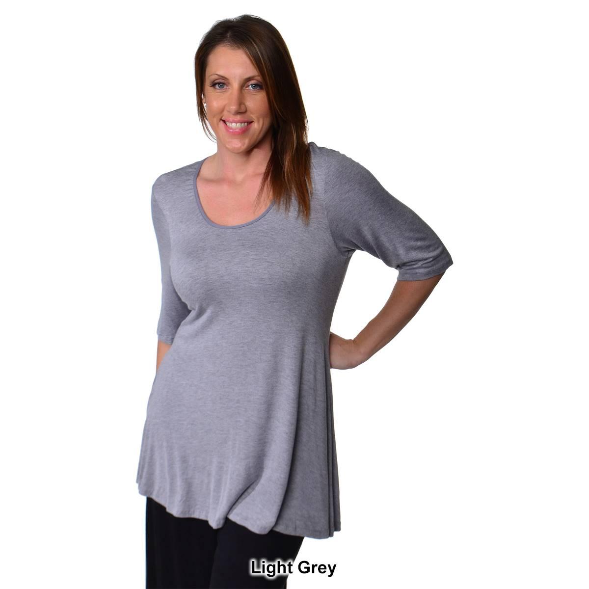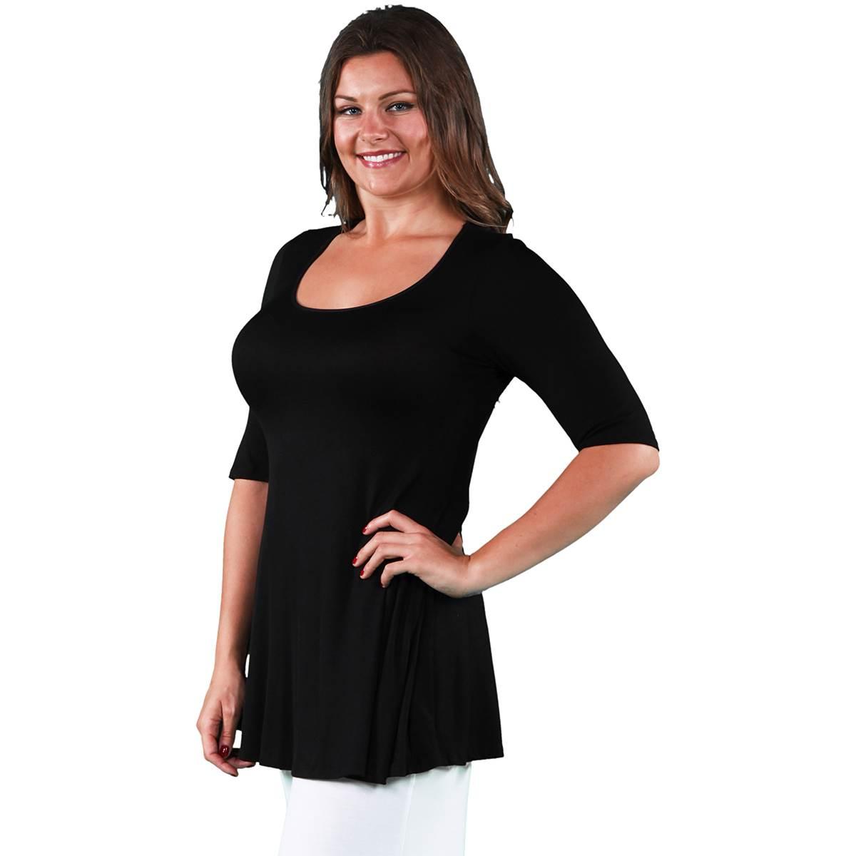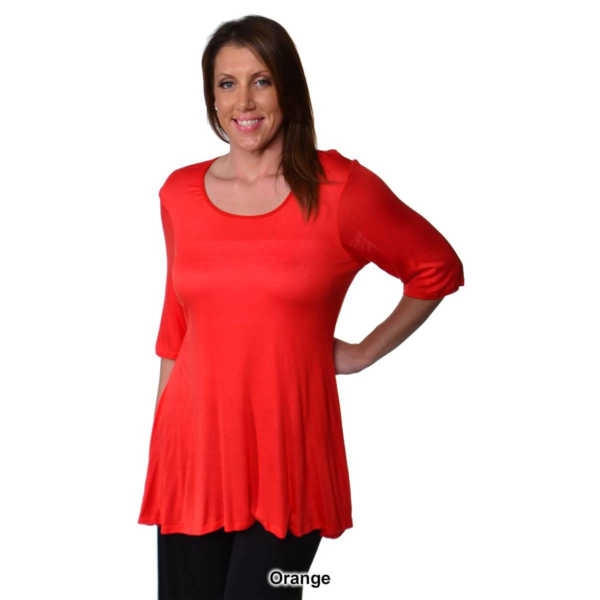 Description This Plus Size 24/7 Comfort Apparel tunic features a stylish scoop neckline, 3/4 sleeves, and is flattering on any frame. The top proves that less is more, as the...