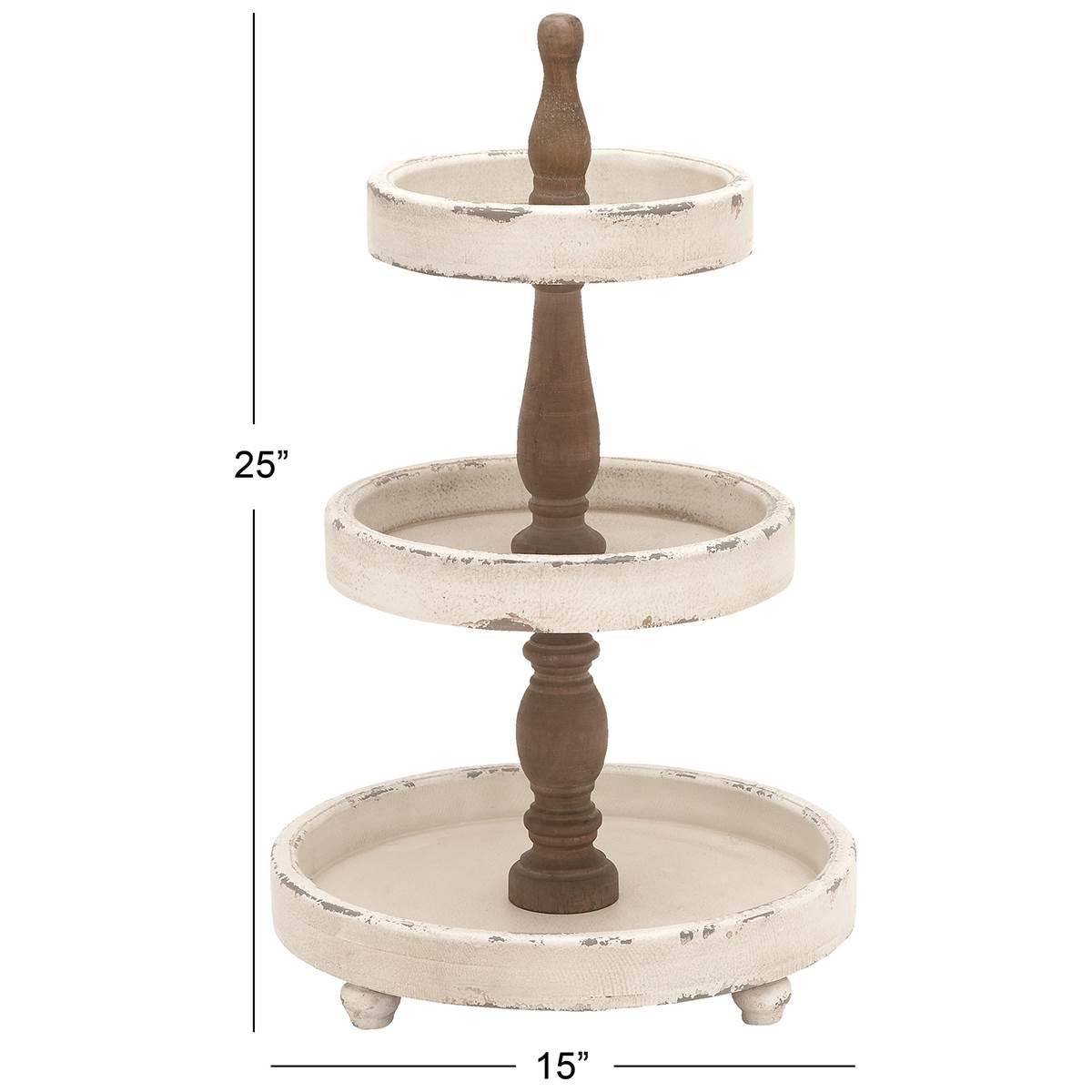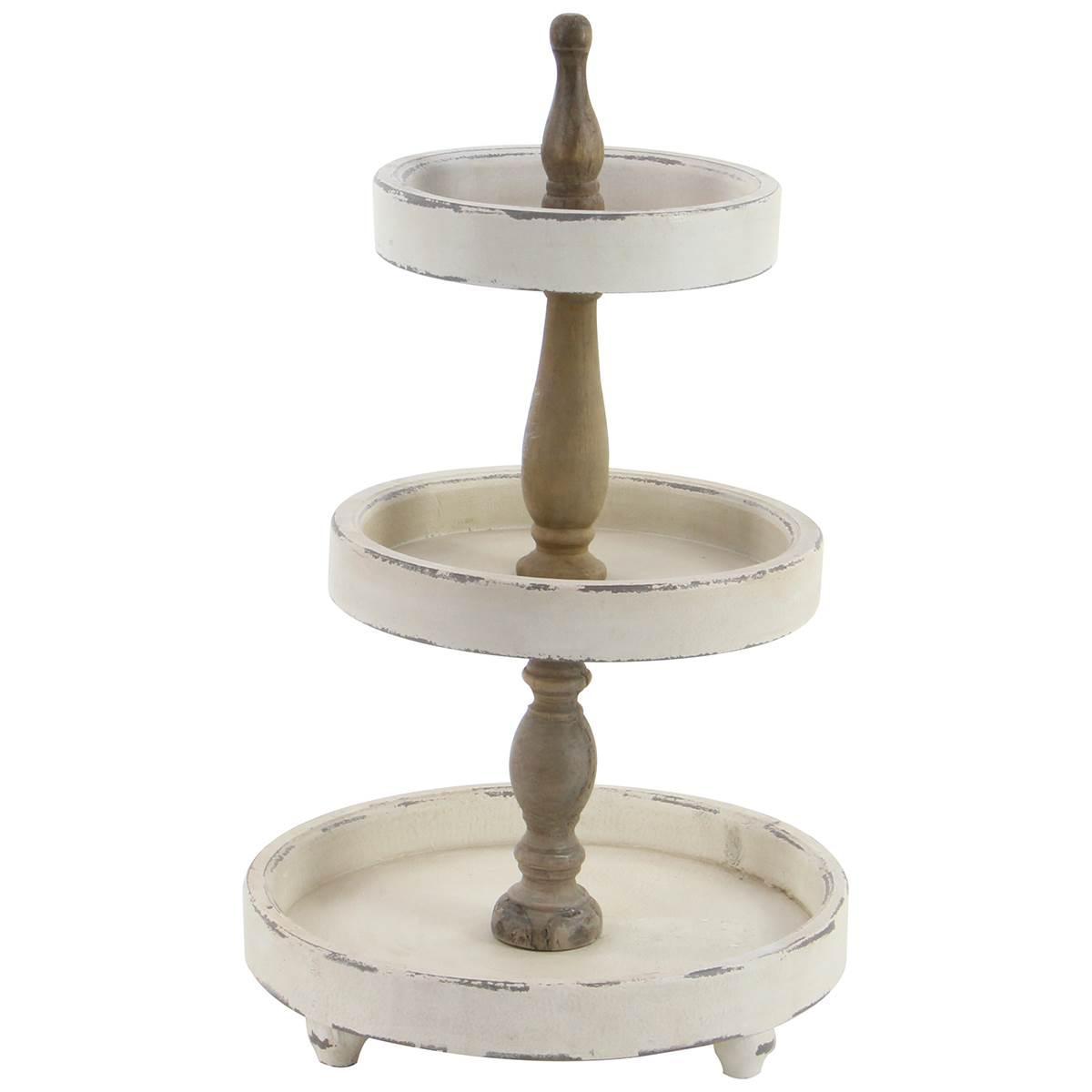 Fall in love the old way as you play a Greek Goddess on your next garden party and let your humble servants present you their freshly picked fruits on this marvelous and ´antique-like 9th & Pike® round dish tray. This stunning decor showcases a large, 3-tier wooden serving dish tray in distressed white and natural wood finish. It has a dark mocha-colored column stand at the center that features a natural wood grain exterior. They are ideal to use as dessert/fruit serving trays for themed parties, events, and holiday gatherings.