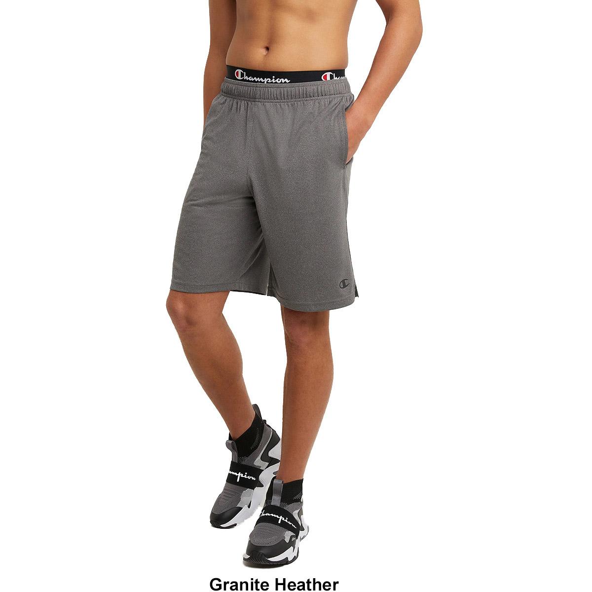 For a pickup game, a workout at the gym, or a morning run, these Mens Champion® Core active training shorts are a perfect fit. They´re made with DOUBLE DRY™ technology that wicks sweat away from the skin and dries in a flash to keep you cool and comfortable. Designed for maximum mobility, these shorts have an elasticized waistband with an inner drawcord that you can adjust to your best fit. Plus, side vents make for easy moves on and off the court. These performance training shorts are thoughtfully designed with convenient side-seam pockets to hold your phone, keys, and other essentials. You´ll appreciate the knee-length 10-inch inseam adding coverage and comfort. The finishing touch on these effortless gym shorts is the iconic Champion® "C" logo on the left leg.