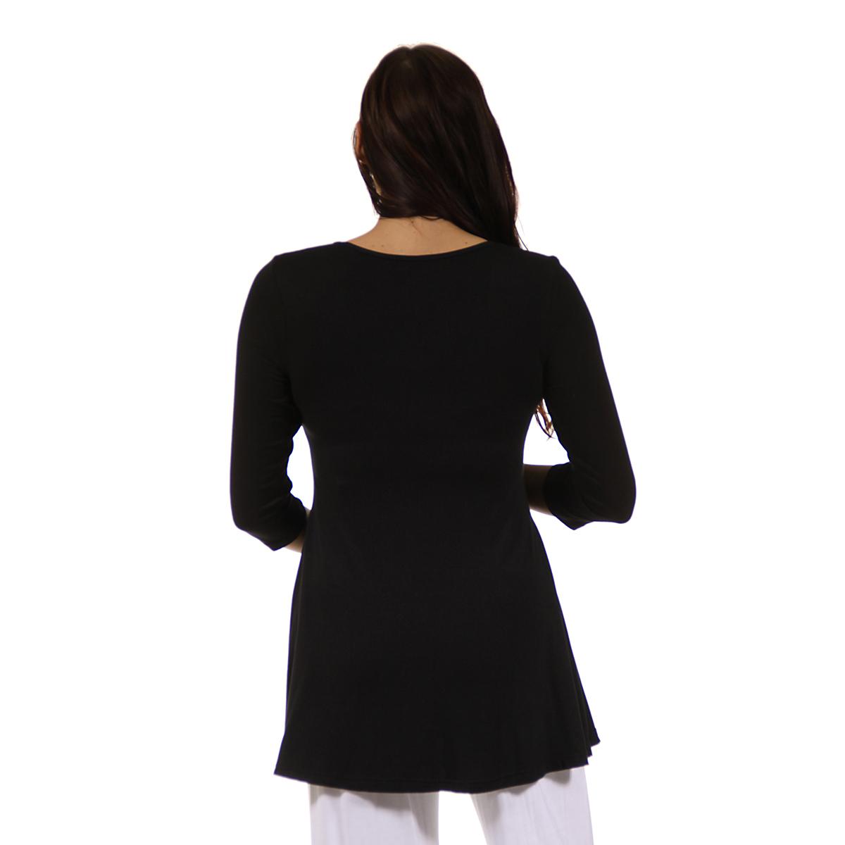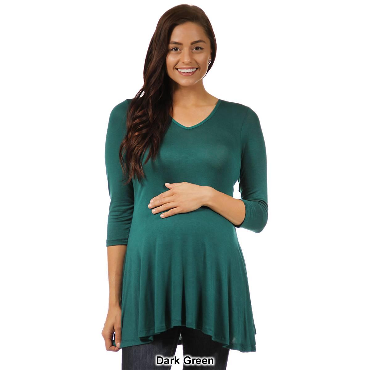 Description This Womens 24/7 Comfort Apparel swingy tunic maternity top is crafted with a long tunic fit and a flared silhouette for an easy chic look. With 3/4 length sleeves, a...