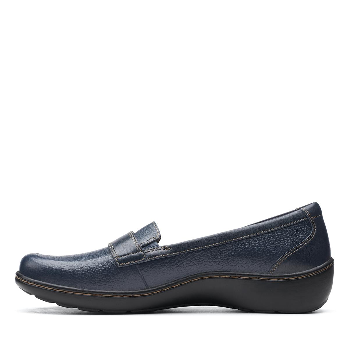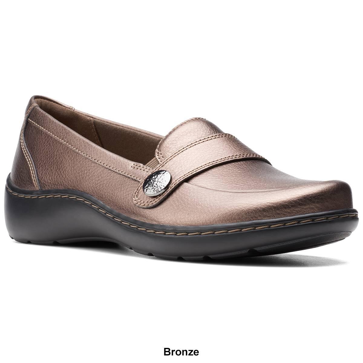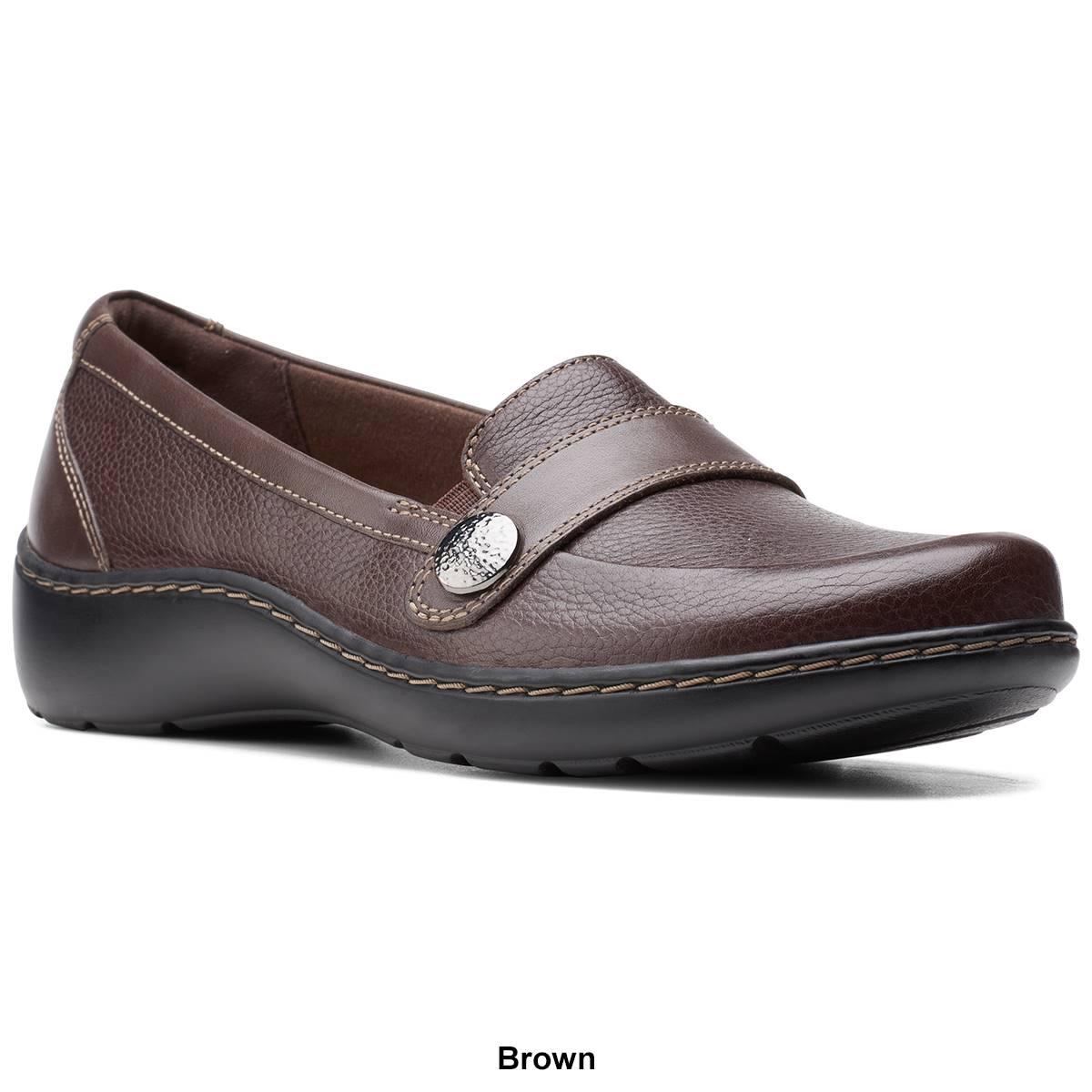 Description These Womens Clarks® Cora Daisy loafers are marked by a full grain leather upper and a decorative strap detail. A pair of subtle elastic gores give it an immediate...