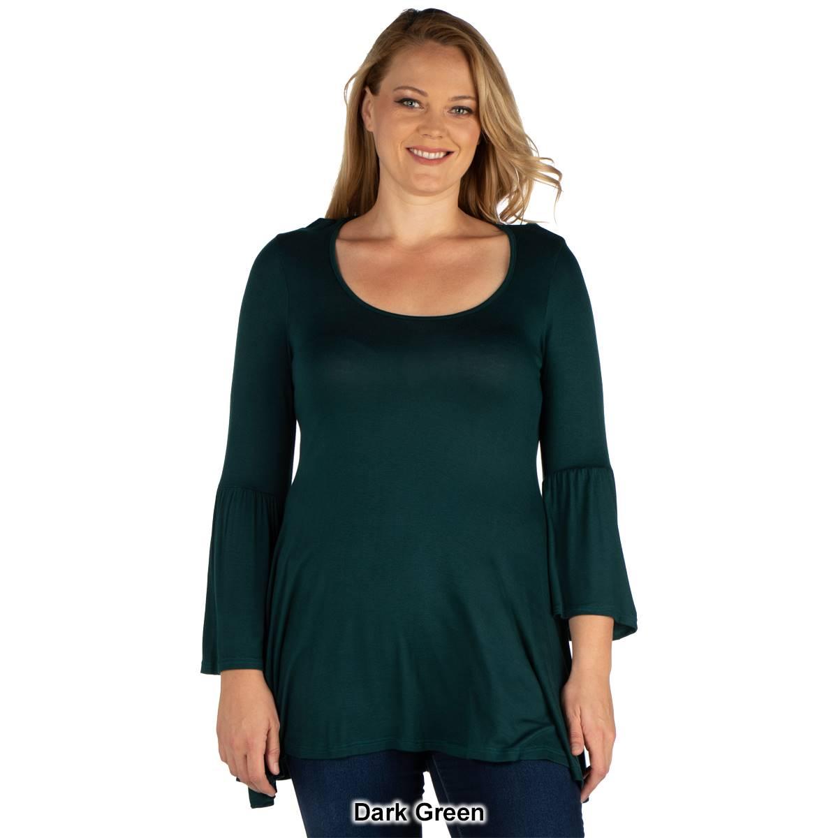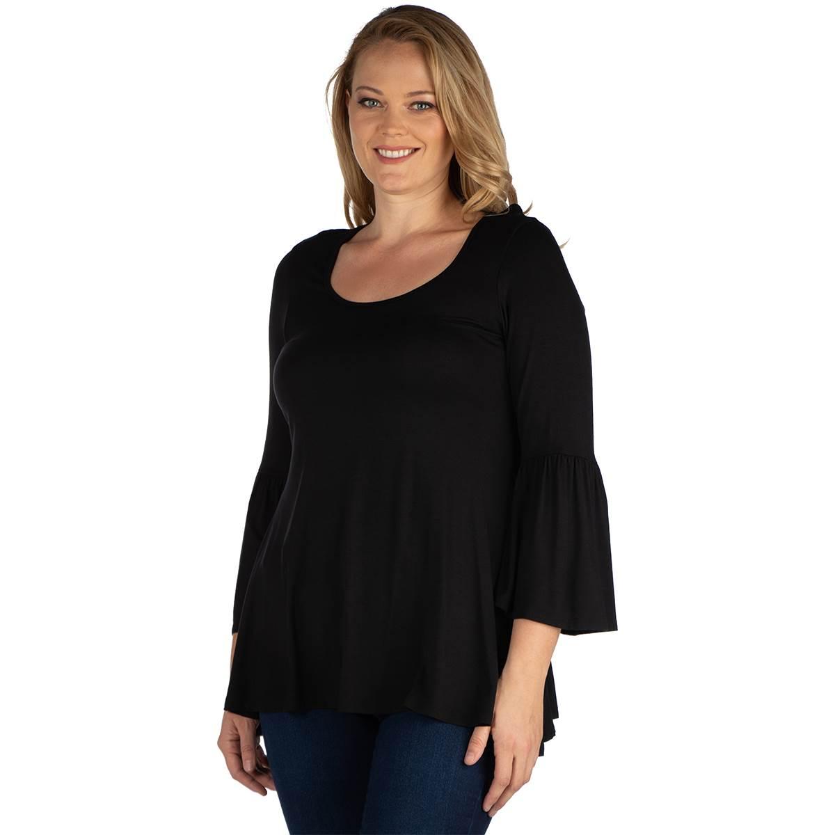 Description This Plus Size 24/7 Comfort Apparel long sleeve tunic will flatter your curves in the loveliest way. Featuring fashion-forward bell sleeves with a scoop neckline and...